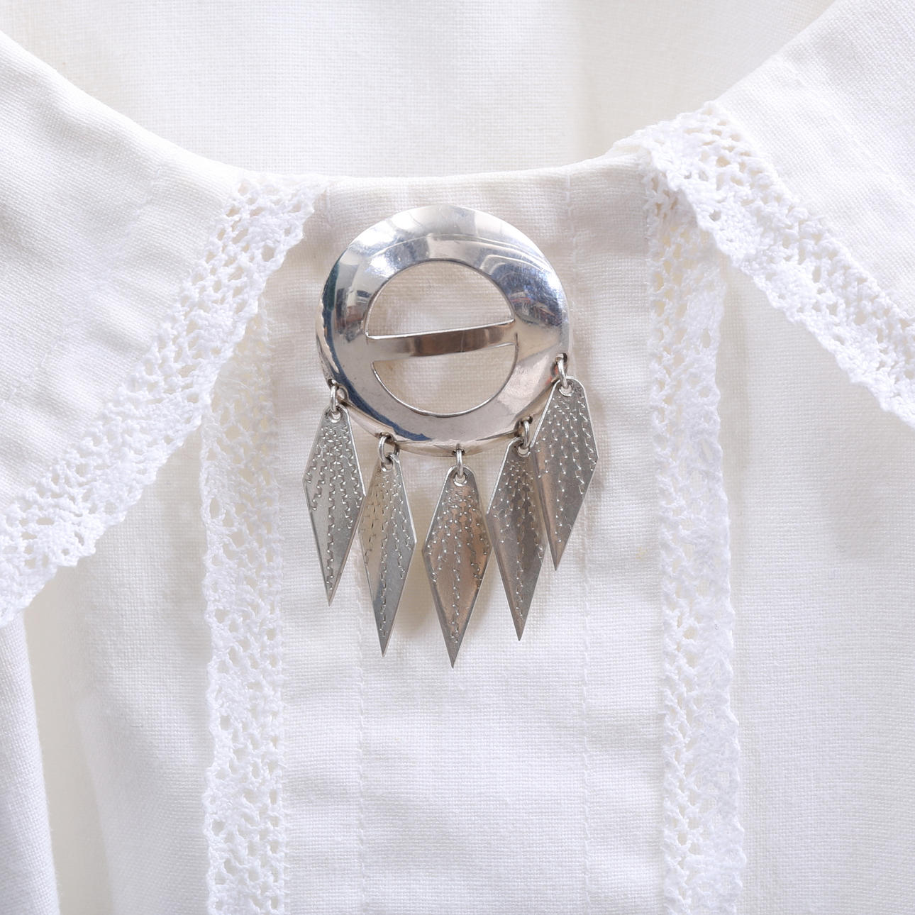 Sølvbroche vægt 10 gram, diameter 30 mm, 1985.