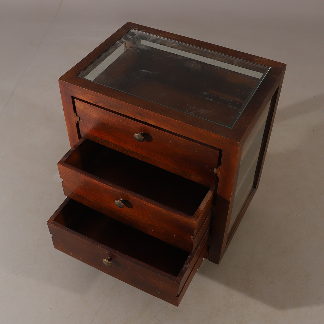 3263637. Kommode af skuffer, 3-skuffe, træ/glas.