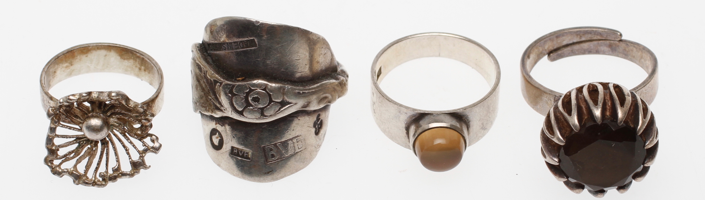 32646. RINGE, 4 stk, sølv, bl.a. Bengt Hallberg.
