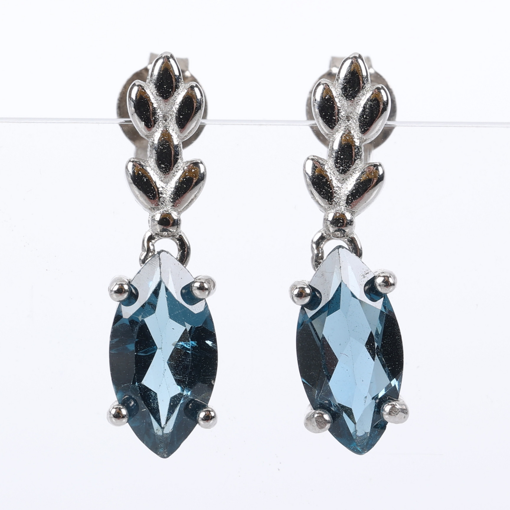 3267570. ØRERINGE, Sterling sølv, Blå topas.