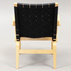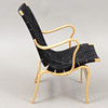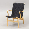 BRUNO MATHSSON. Lænestol, „Eva“, bog/lærred, Dux.