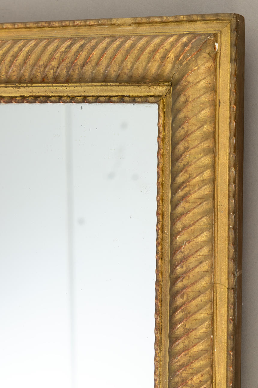 Træramme, malet guld på kridt. Rektangulær ramme med snørbinding