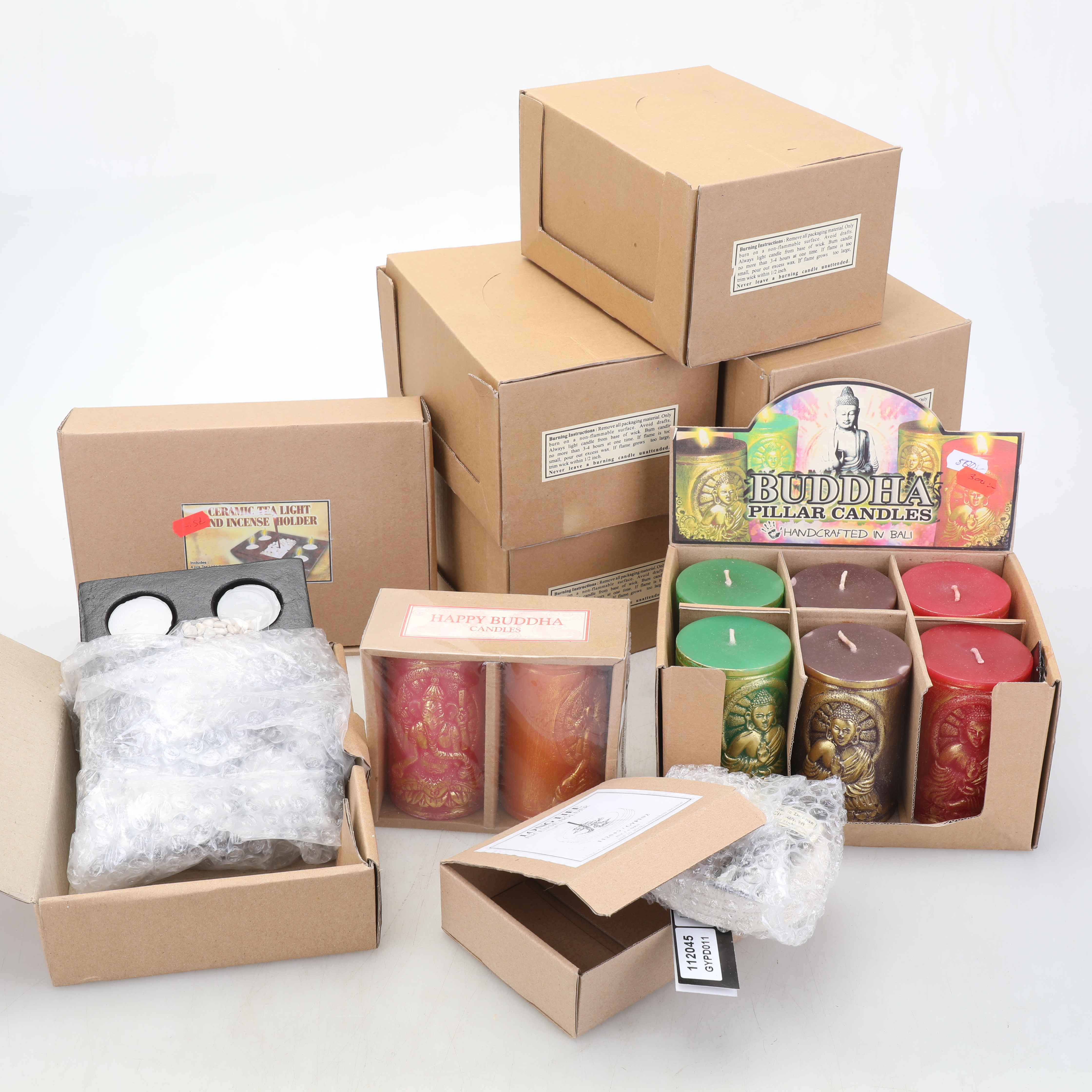 3270458. BLOCK CANDLE og holder til duftpinde.