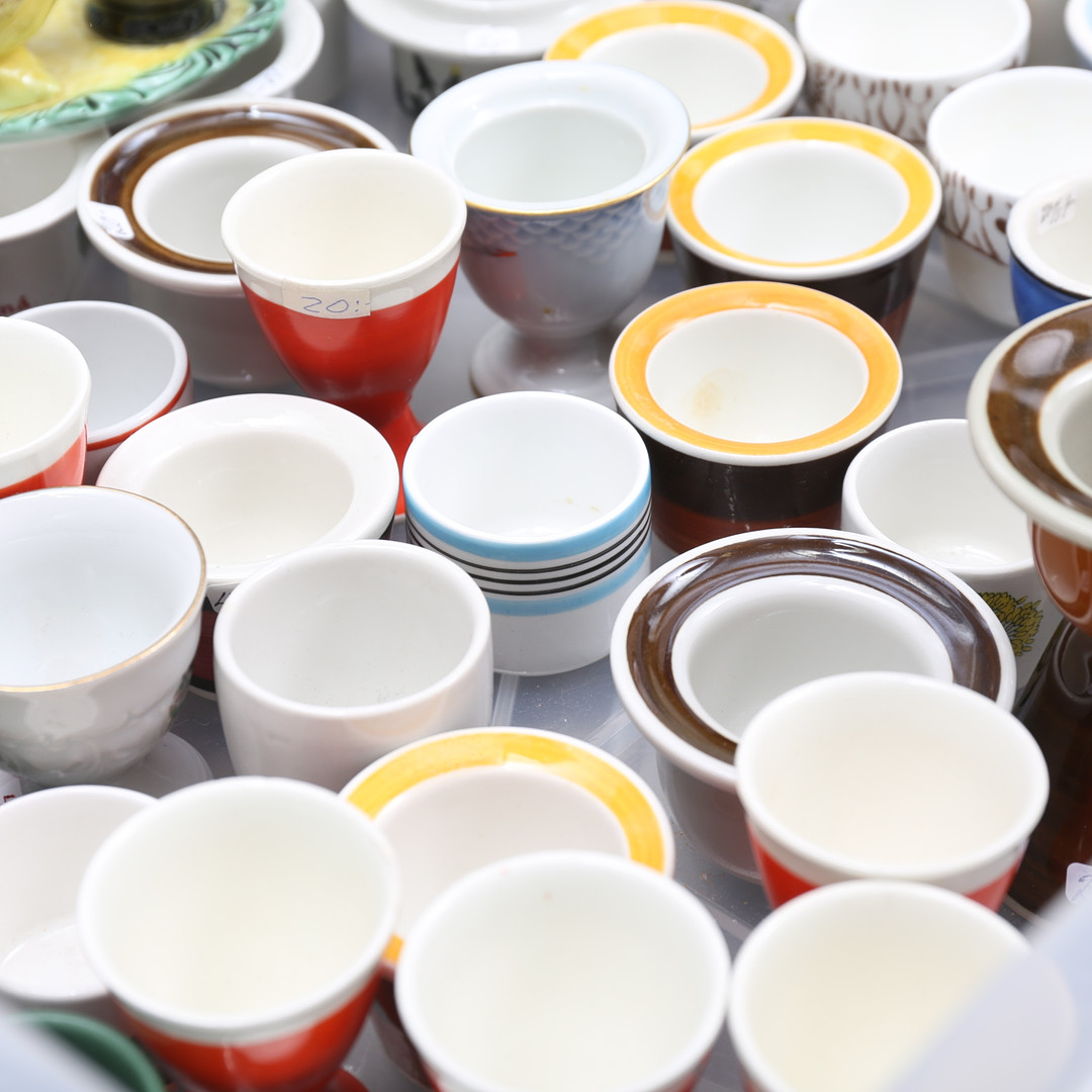 3278150. ÆGGEKOPPER, ca. 100 stykker, porcelæn/glas.