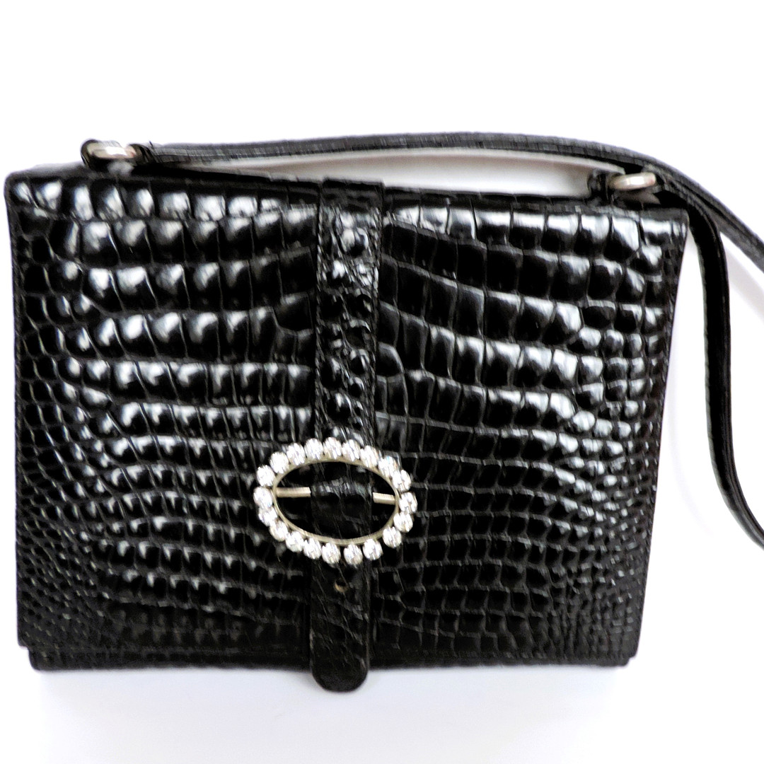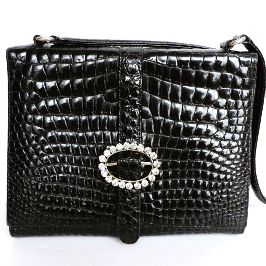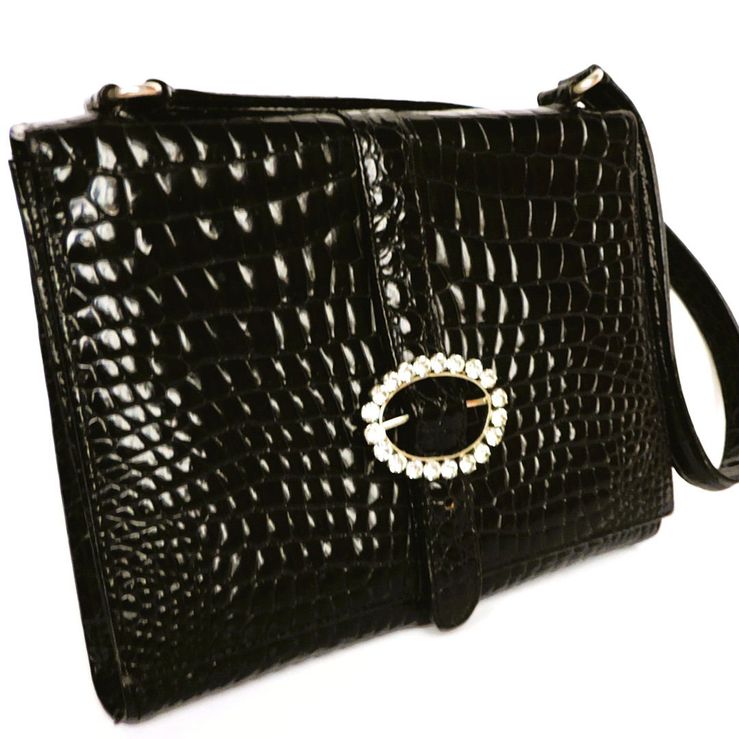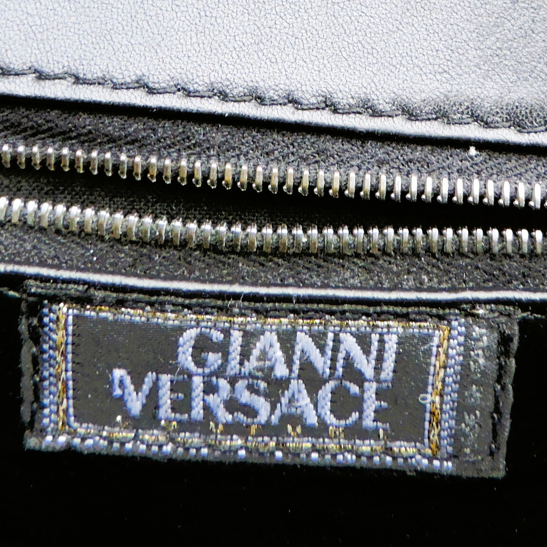 3278599. Gianni Versace Couture præget sort læder håndtaske.