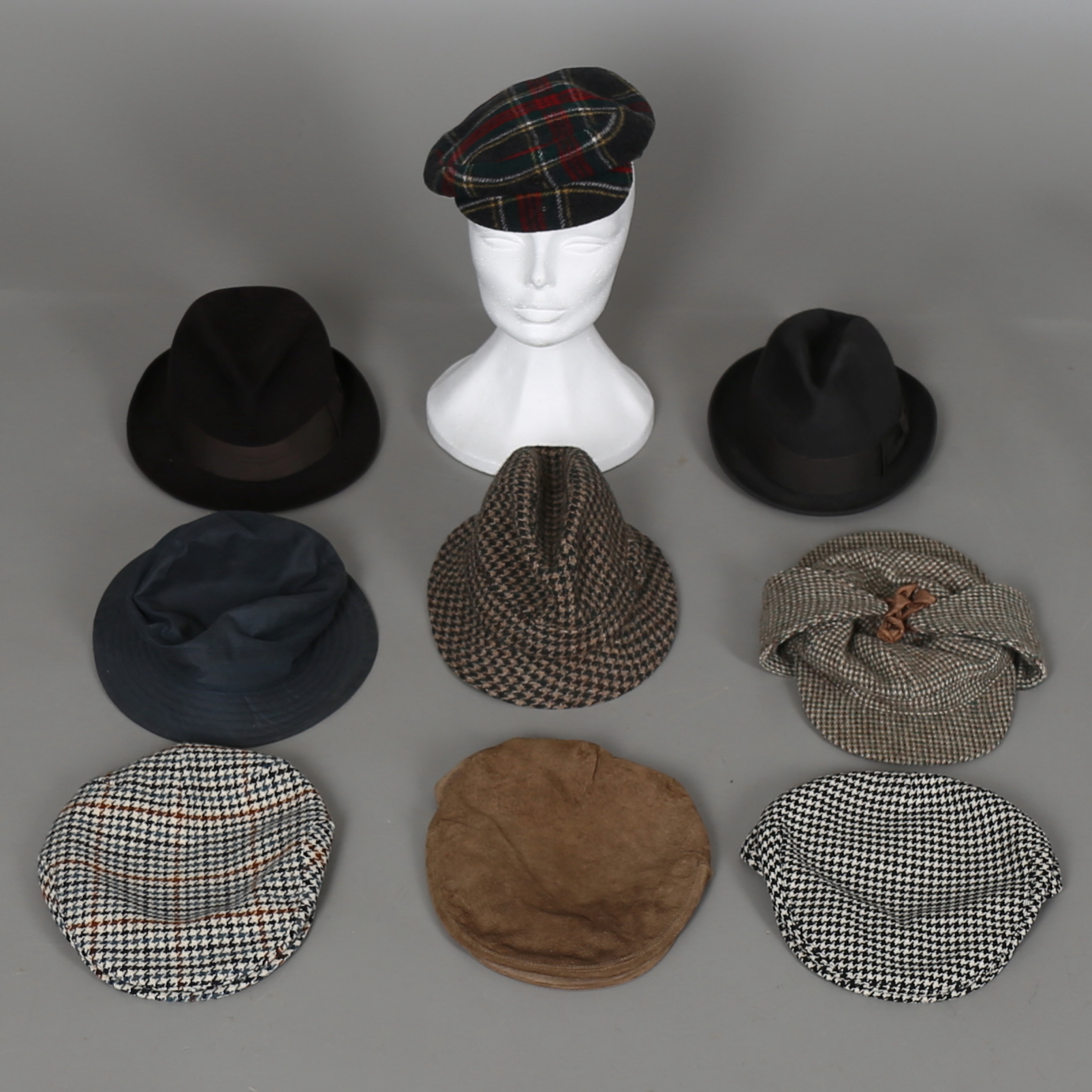 328439. Sæt HATTE & CAPS, 9 stk, indvendigt mål ca 56 cm.