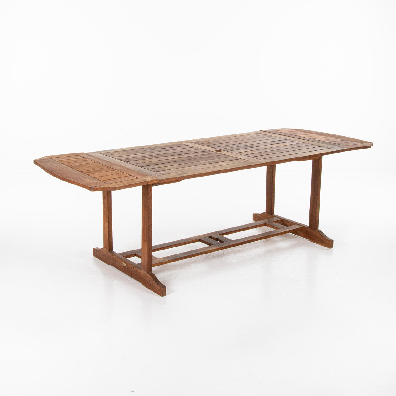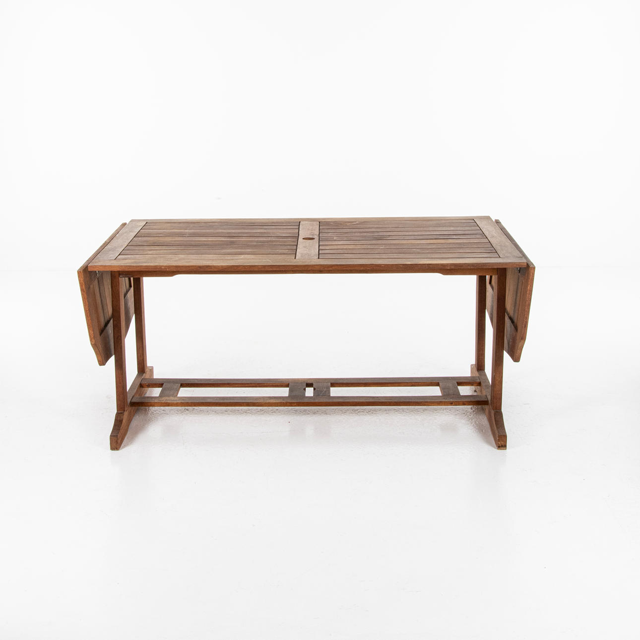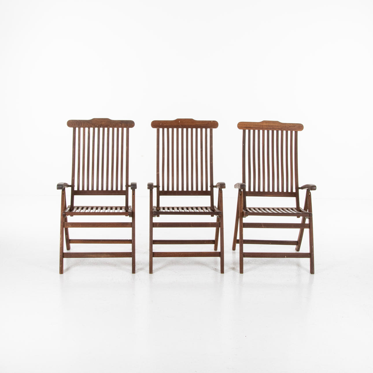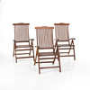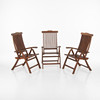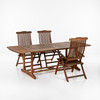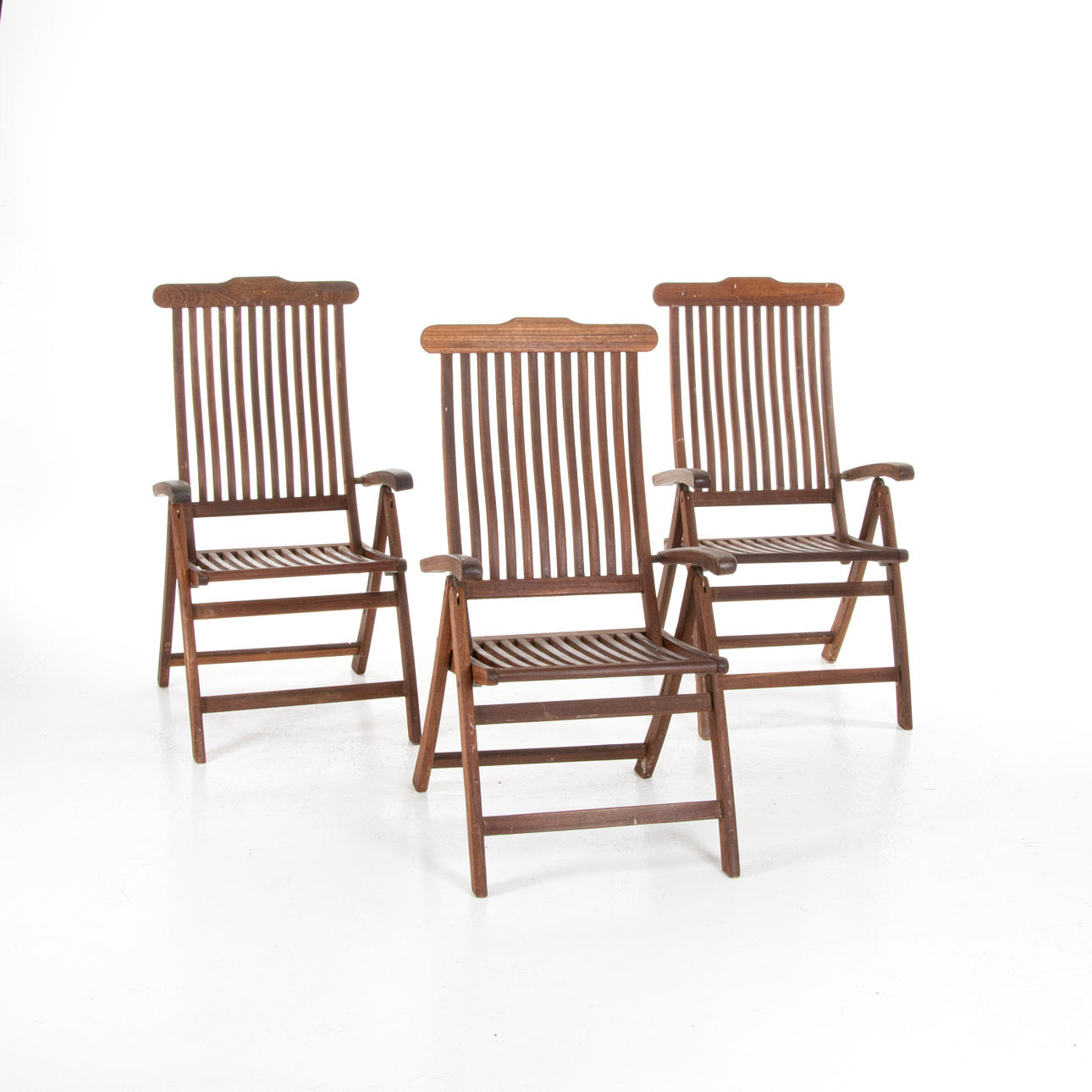 Havemøbler, teak, bestående af 3 lænestole og et bord med klapper.