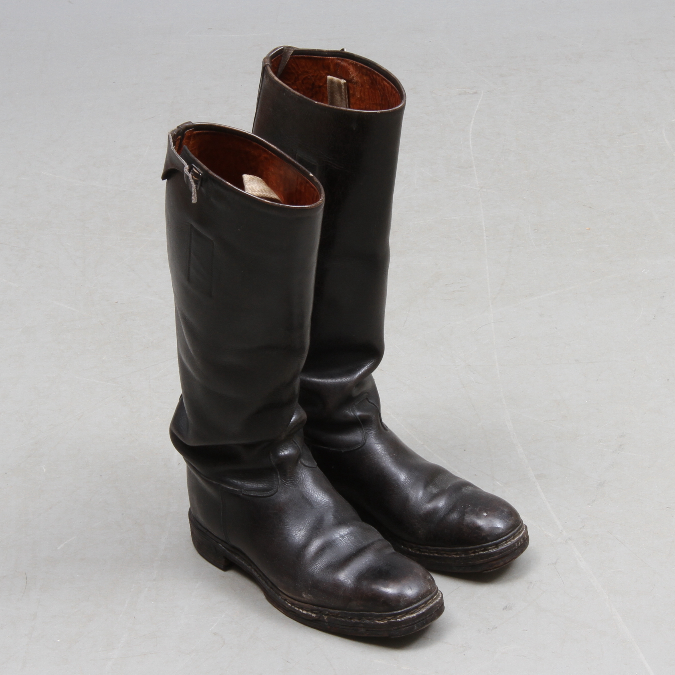 328835. RIDE STOLVE 1 par, læder, 1900-tallet.