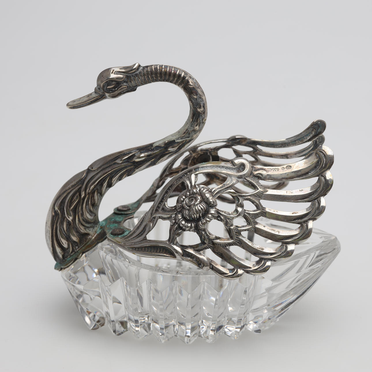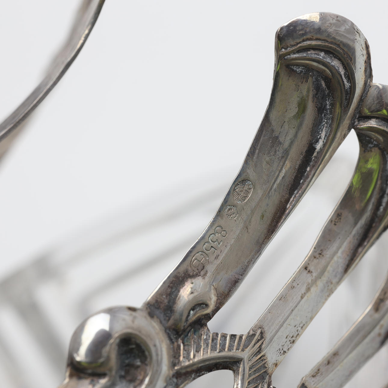 3289453. SUKKER/SALTBAKKE, sølv og malet glas.