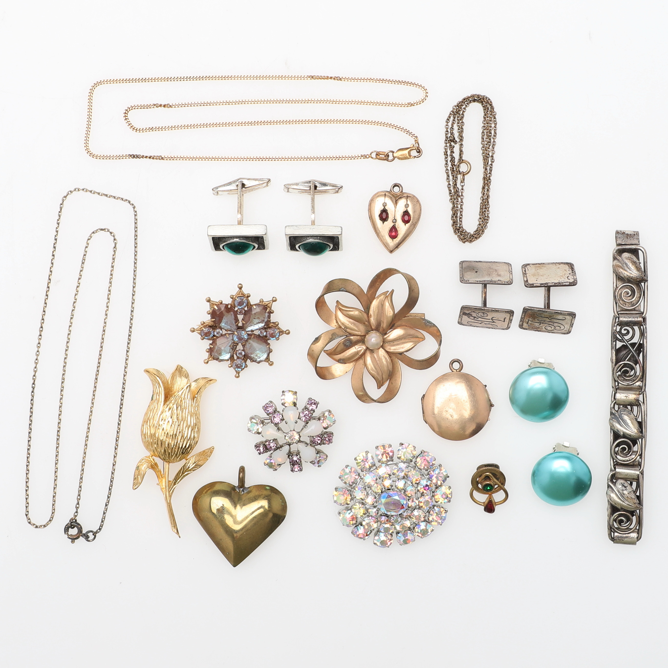 3291845. SMYKKE i smykkeskrin, delvis sølv.