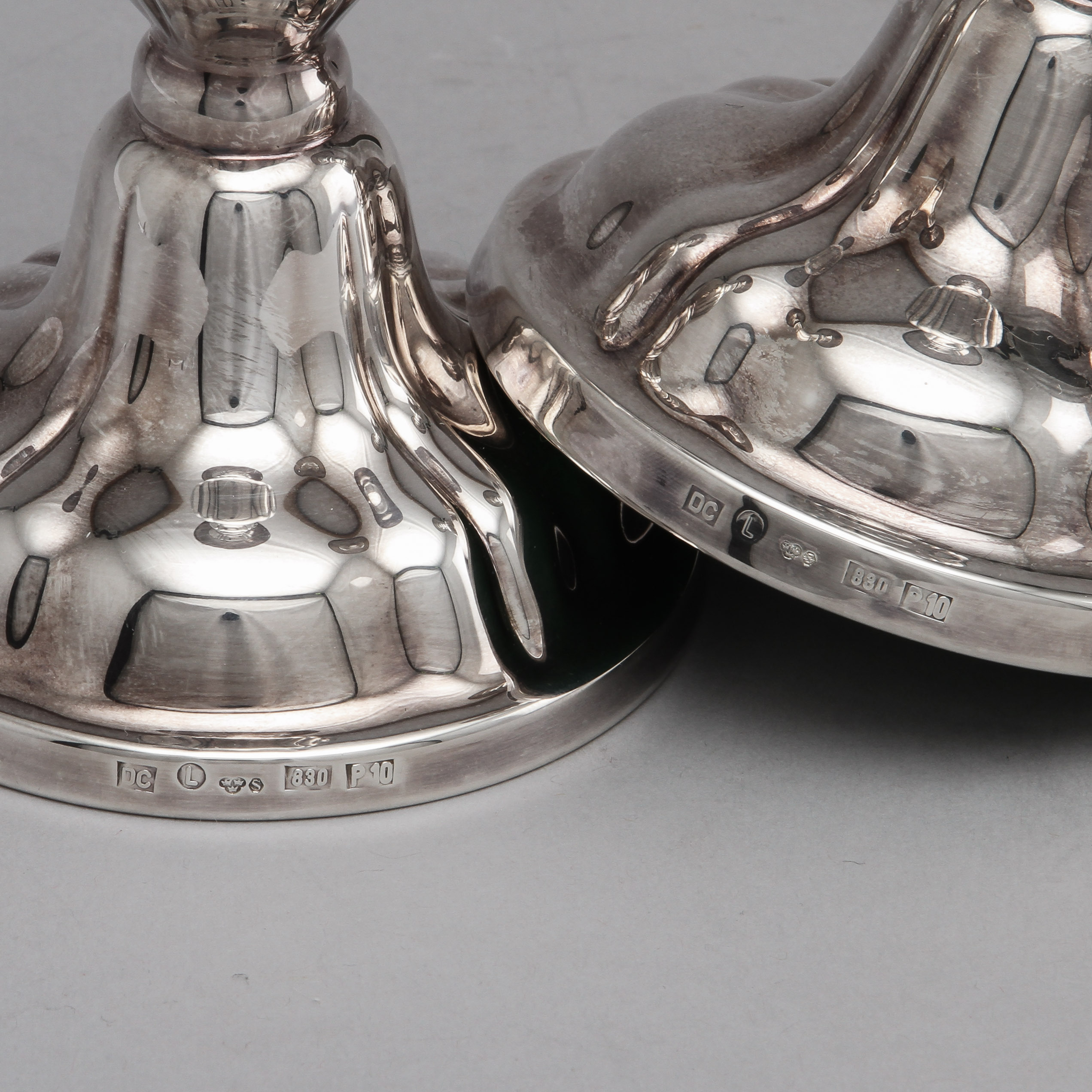 329223. Lysestager, 1 par, sølv, 1989.