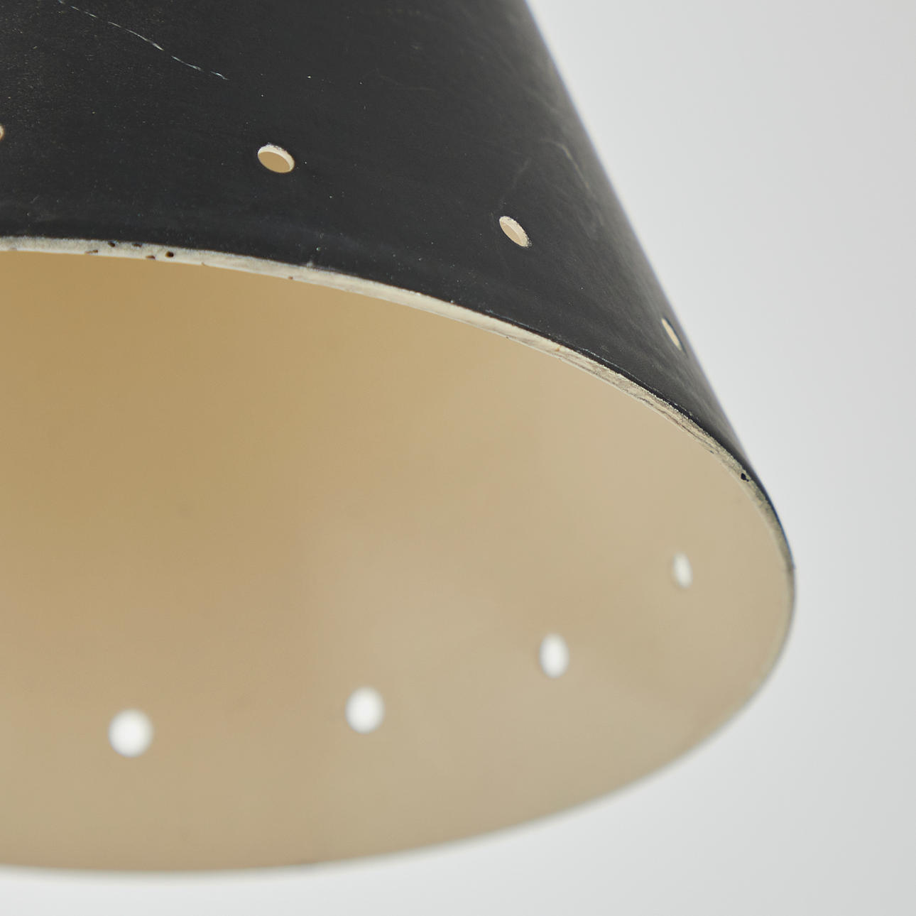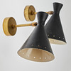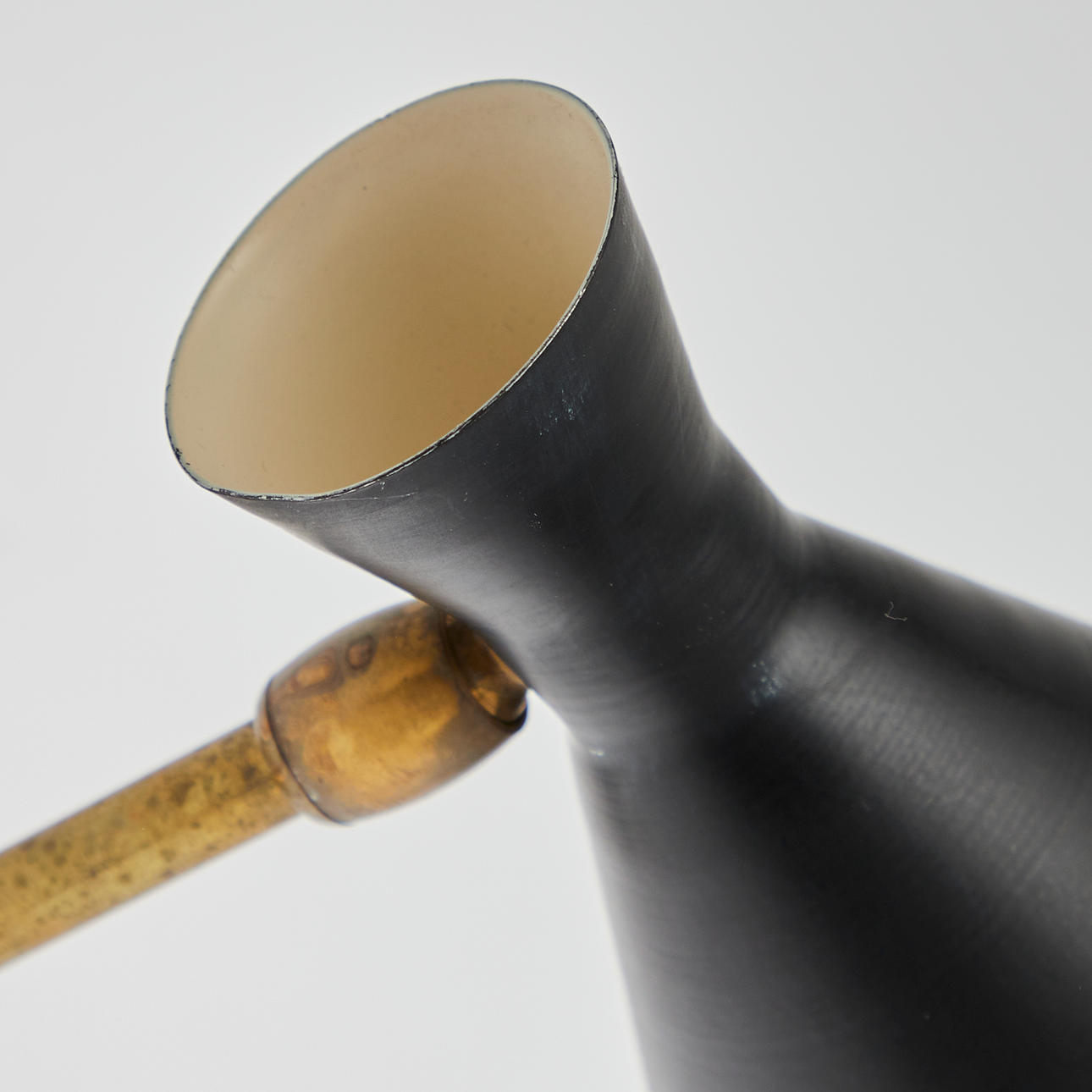 To væglamper, messing, Italien. To væglamper bestående af en messingramme og en kegleformet, sortmalet lampeskærm, udstyret med et kugleled og en brænder, hver H.17cm, L.17,5 cm, W.12,5 cm. (2).