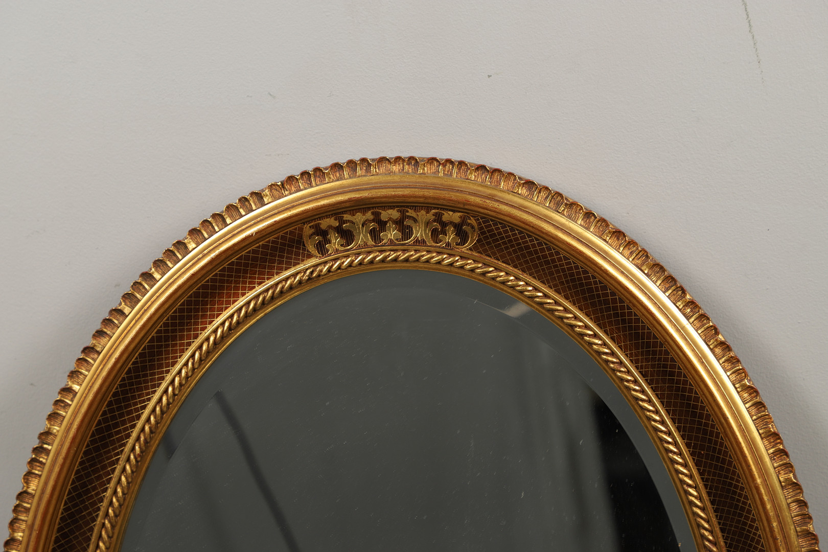 3293085. ET OVALT FORGYLDT INDRAMMET SPEJL.