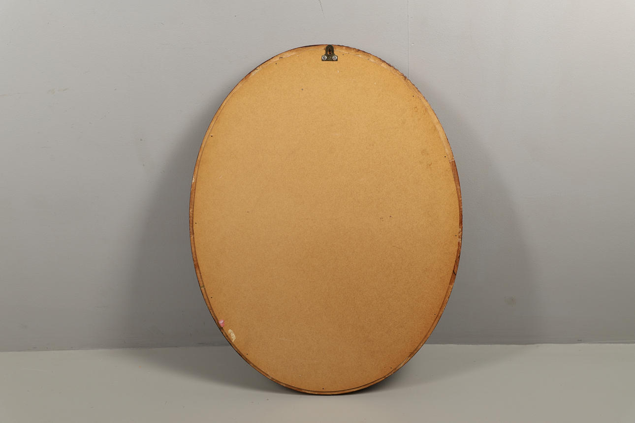 3293085. ET OVALT FORGYLDT INDRAMMET SPEJL.