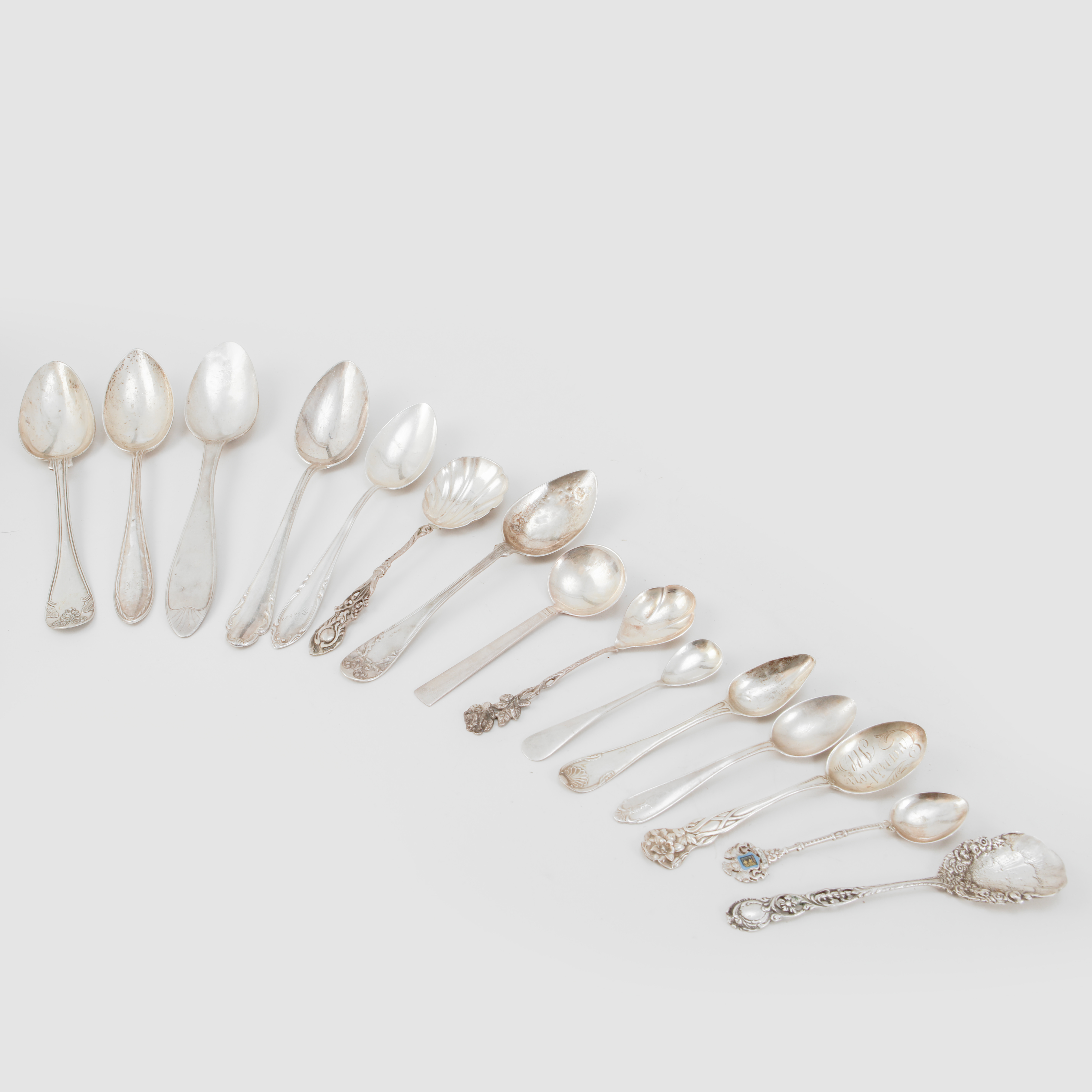 3297512. SØLV, 15 stykker, vægt ca. 450 gram.
