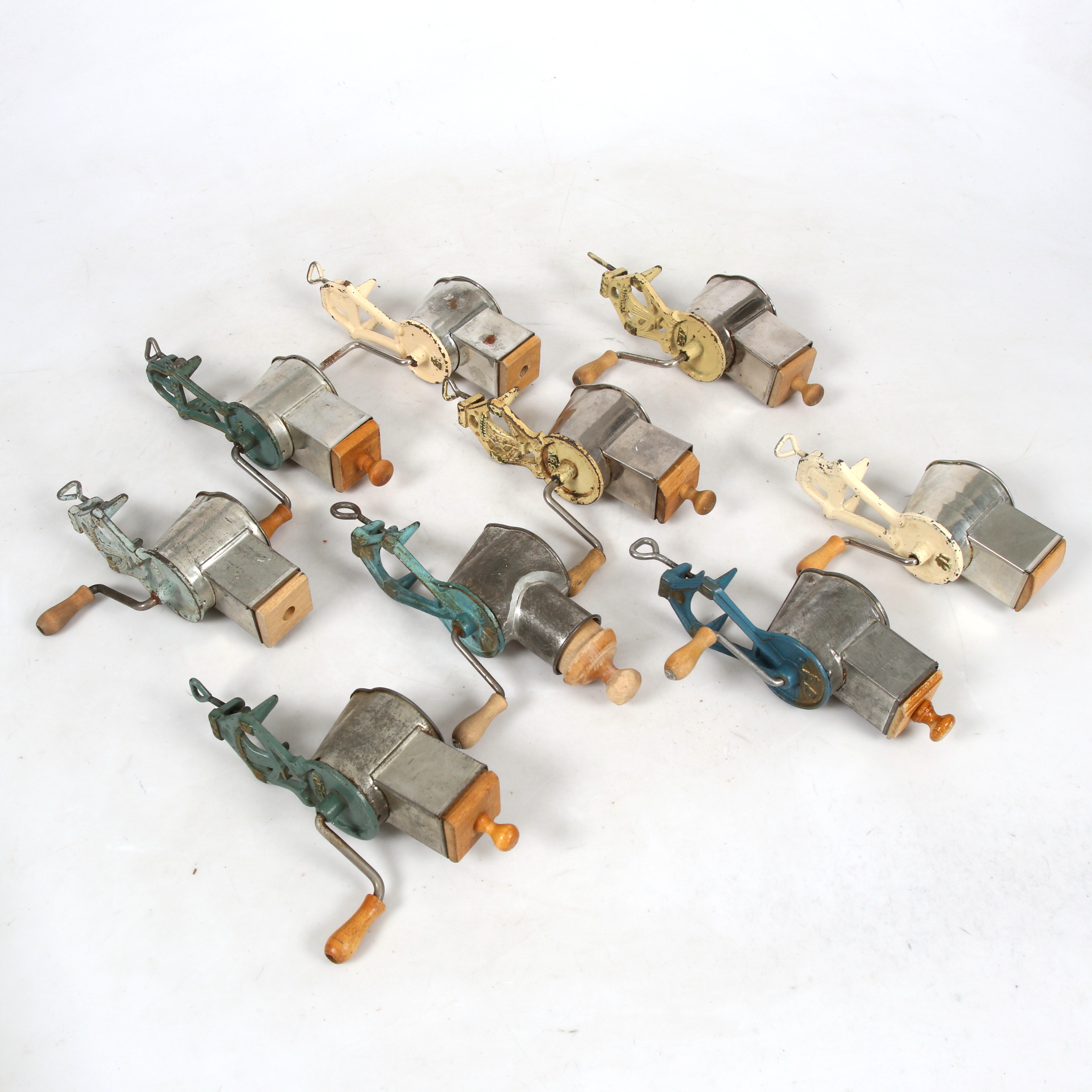 3298206. MANDELMØLLER, 9 stk., metal, 1900-tal.