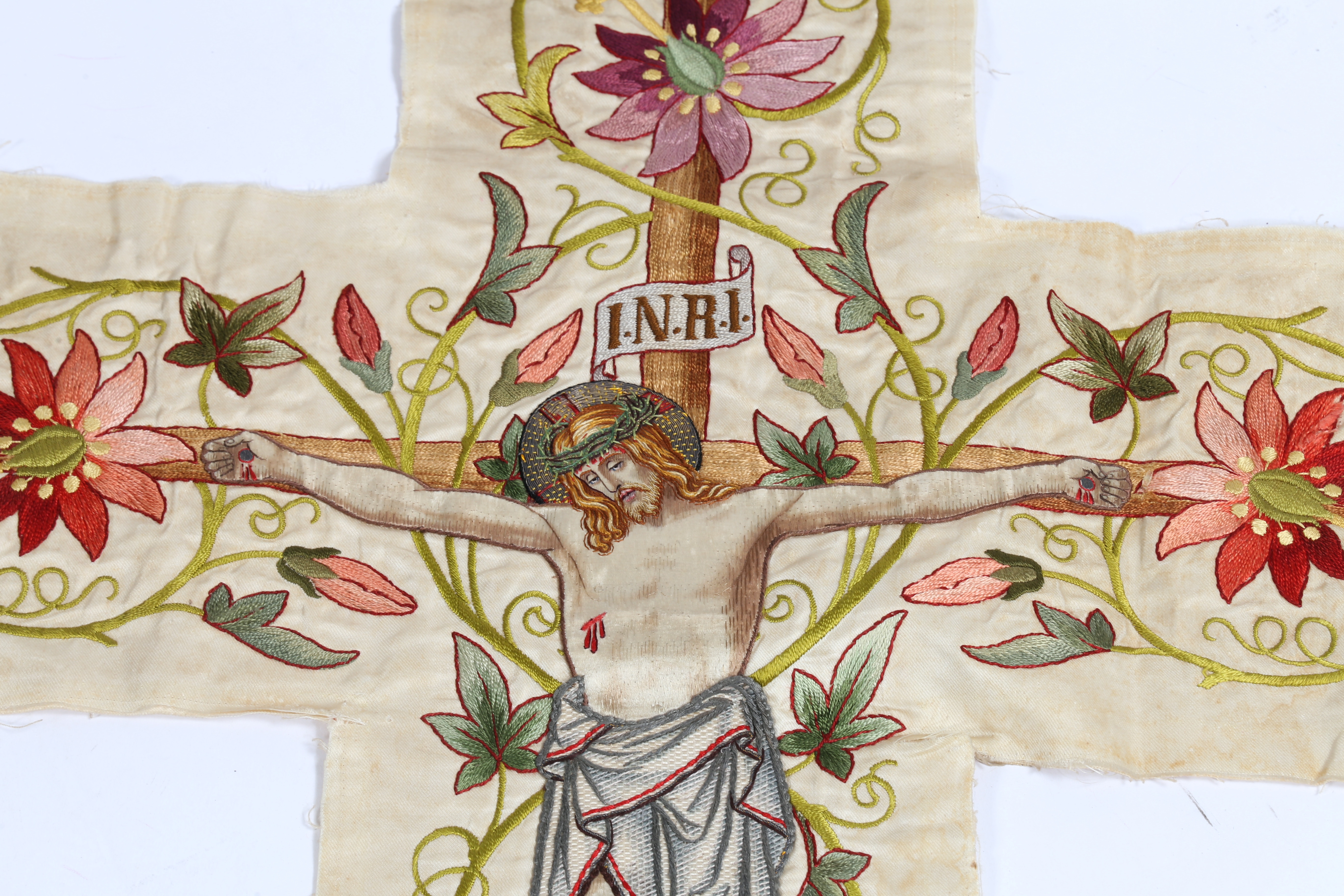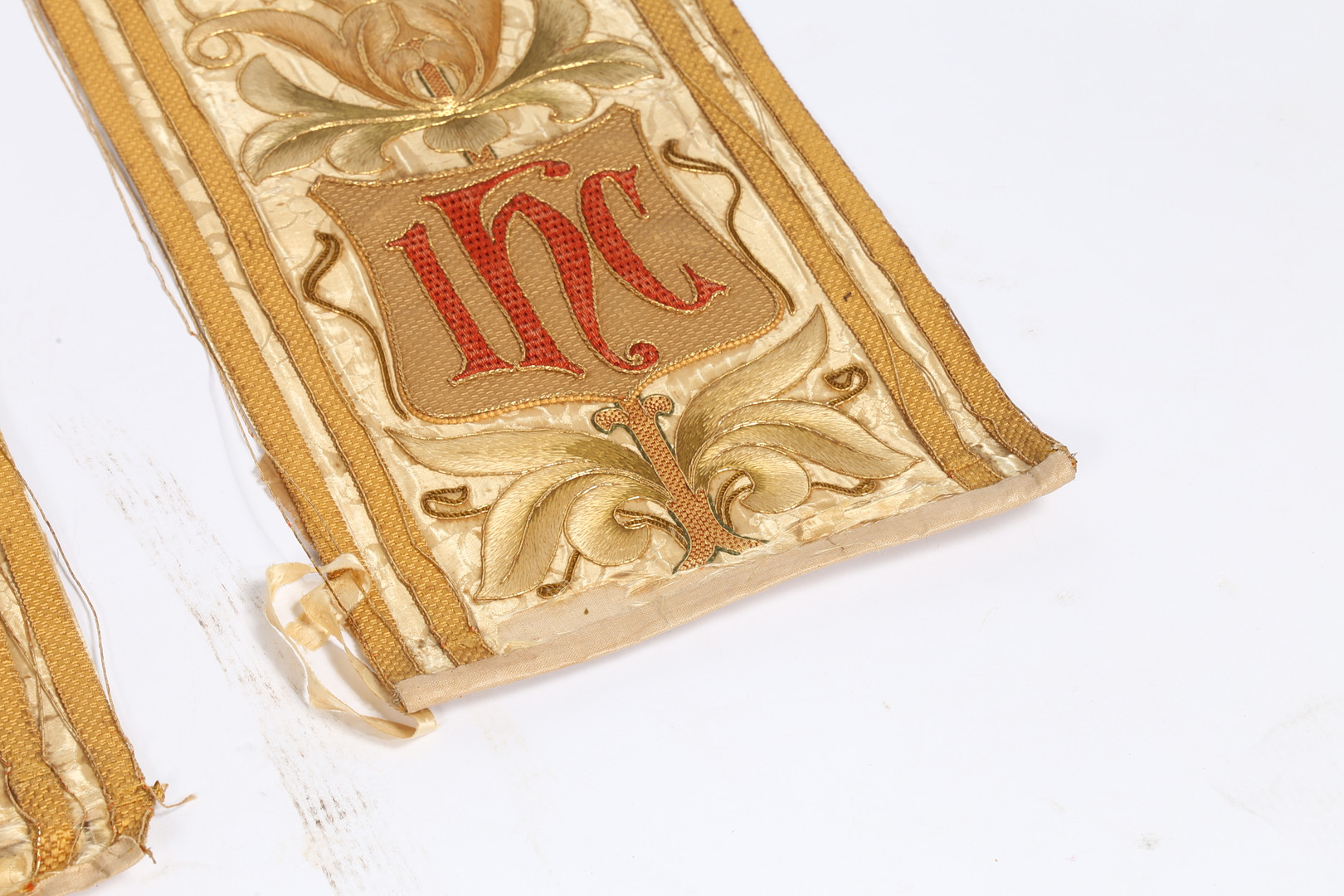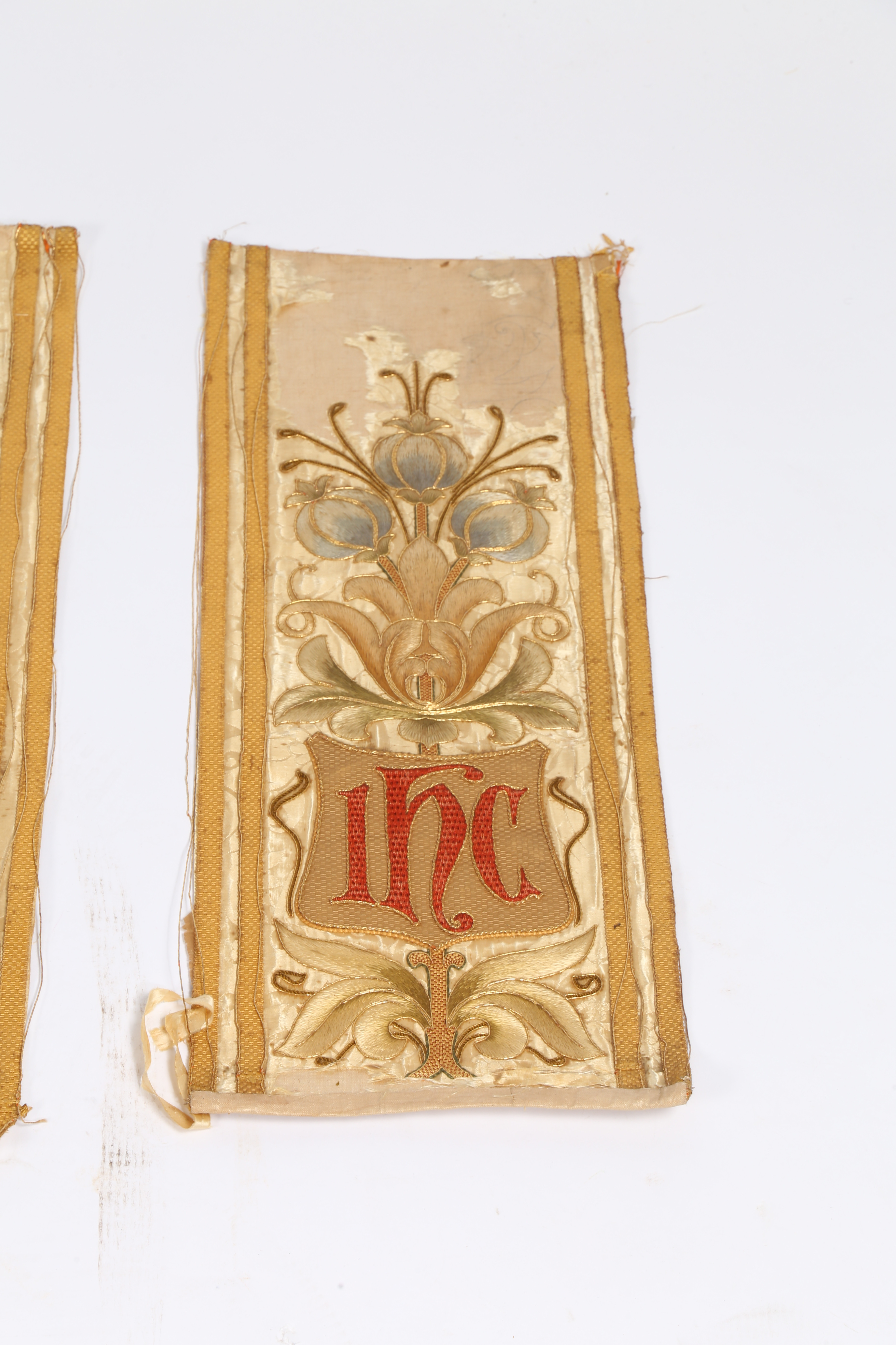 3298406. FIRE ROMERSK-KATOLSKE ALTER FRONTPANELER MED TRÅDBRODERI.