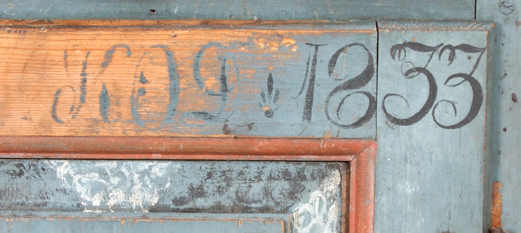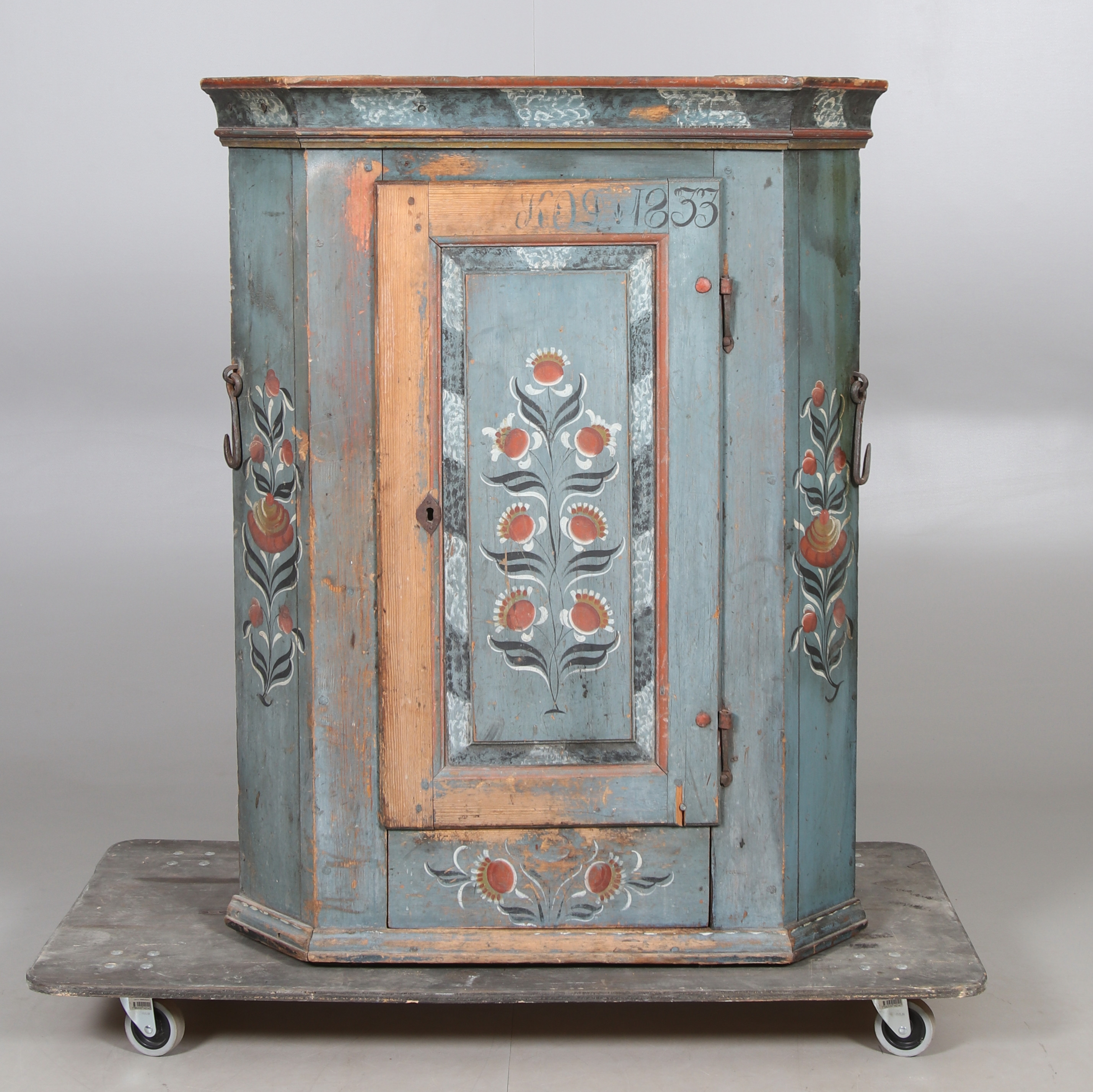 3300792. Hjørneskab, almoge, dateret 1833.