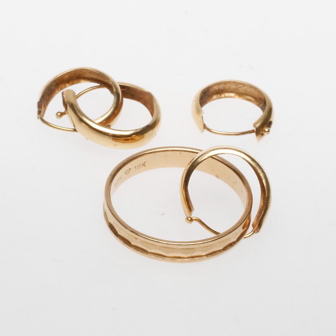 330292. RING OG ØRERINGE, 18k guld, vægt ca 3,5 gr.