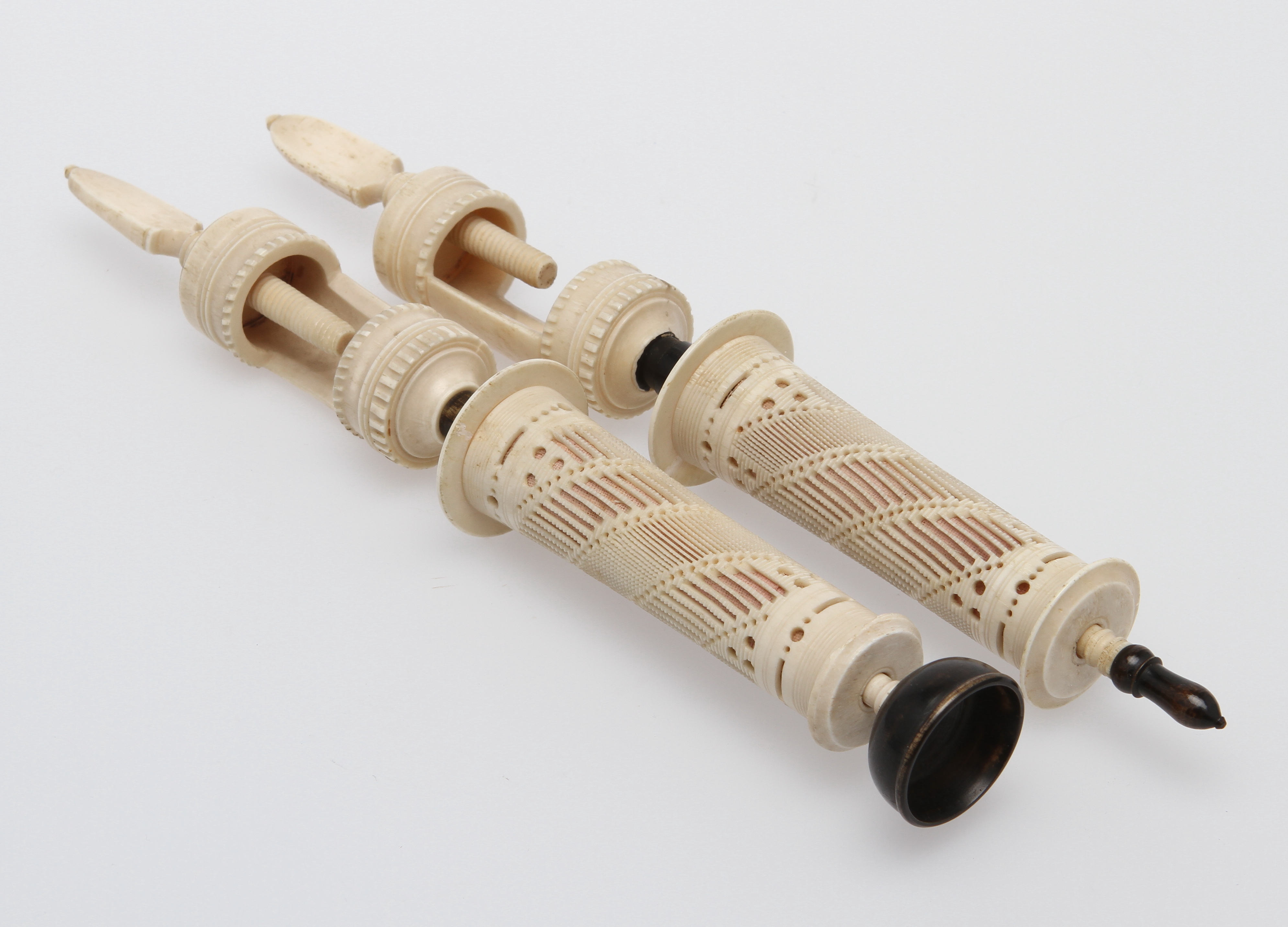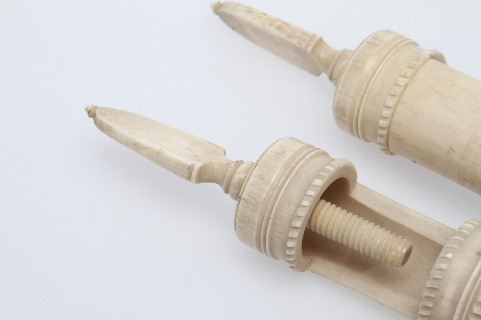 33050. GARNVINDE, 2 stk, drejede ben, 1800 tallet.