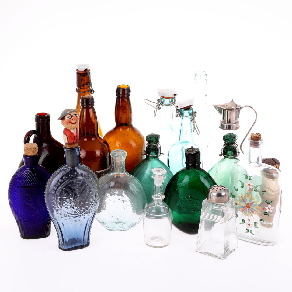 330533. FLASKER OG GLAS OBJEKTER 18 stk, 1800/2000 årh.