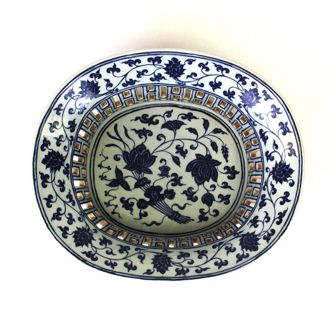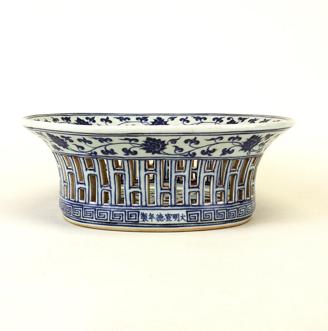 En fin kinesisk porcelænskastanjekurv, L. 28,3 cm. H. 10,2 cm.