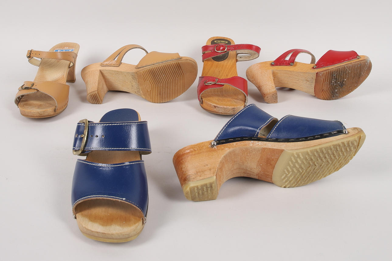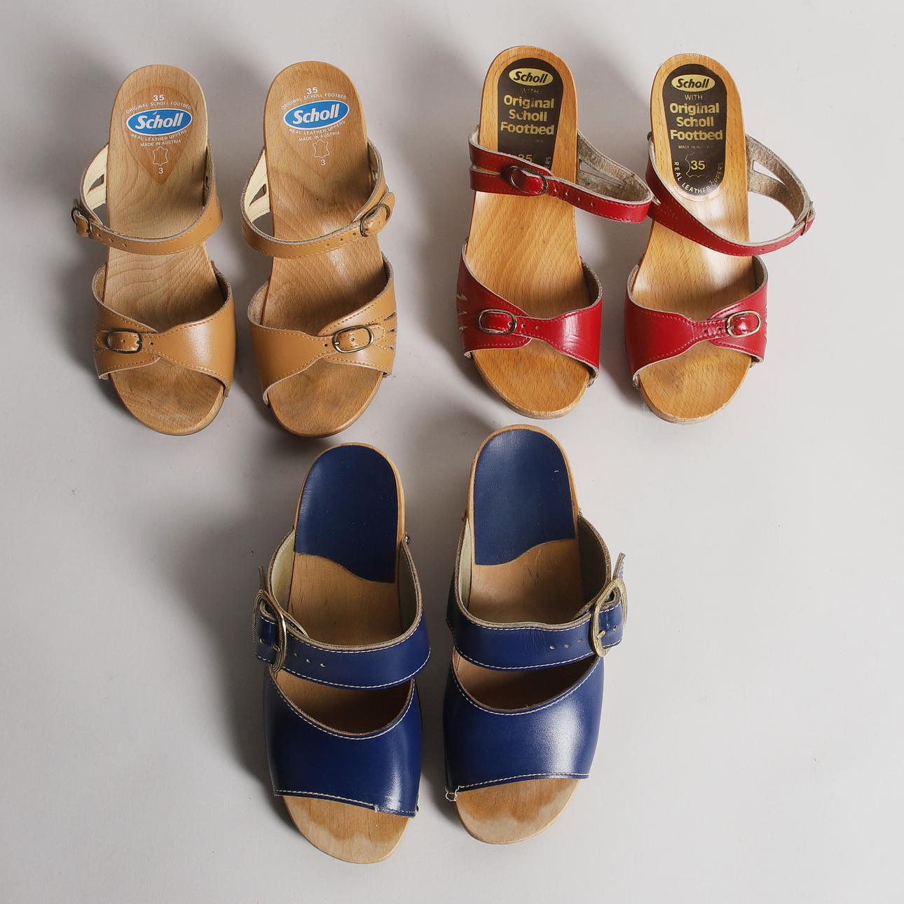 SANDALER, 3 par, træ & læder, Scholl, str. 35.