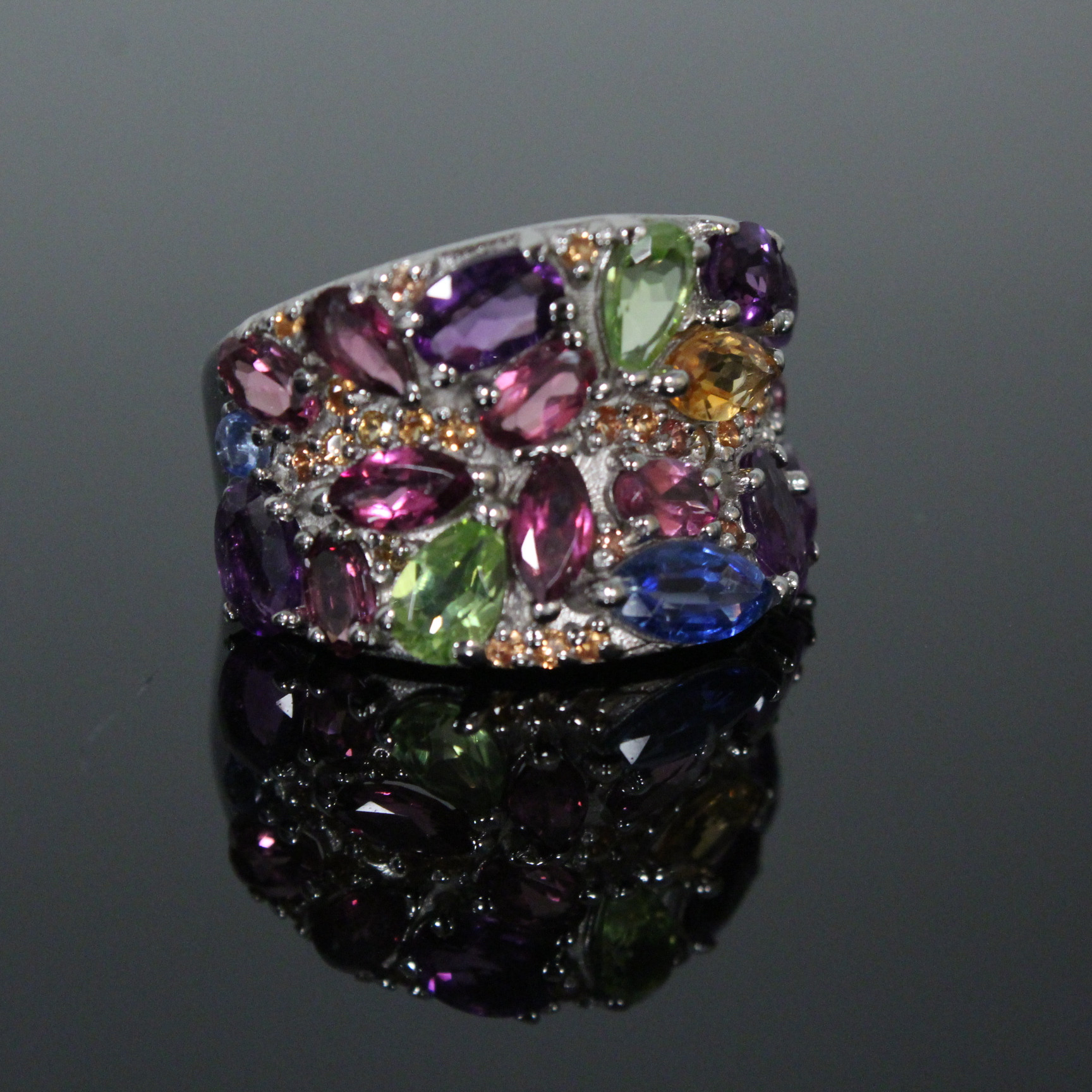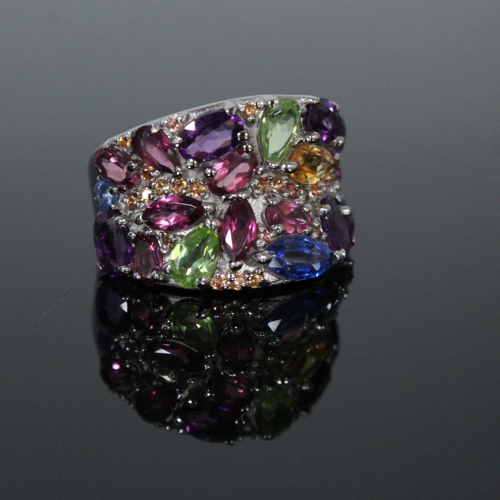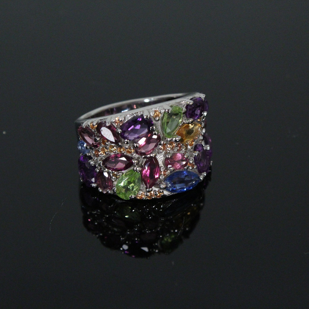 3315764. ring med farverige ædelsten, 925 sølv.