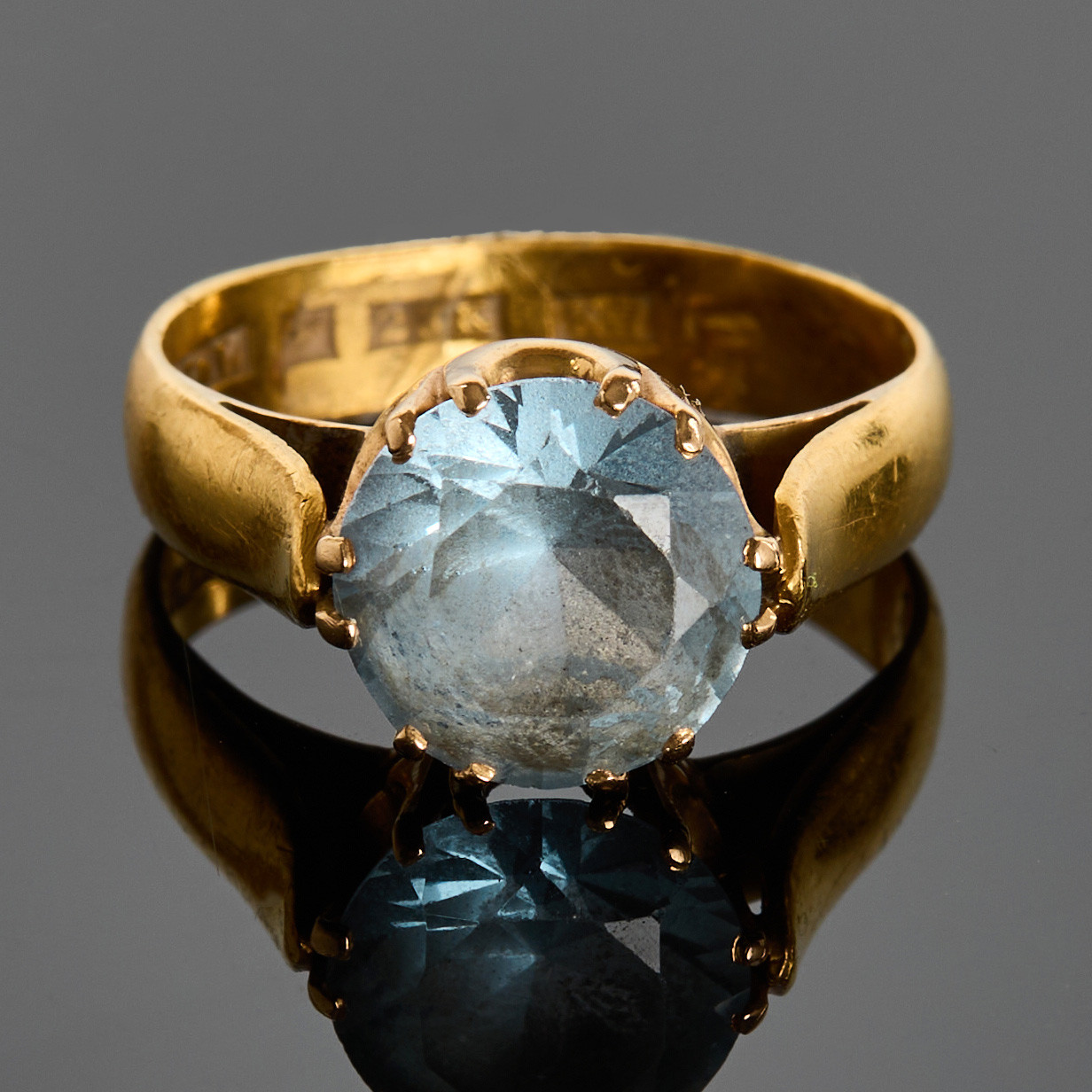 3321377. RING, 23k gul, med blå topas.