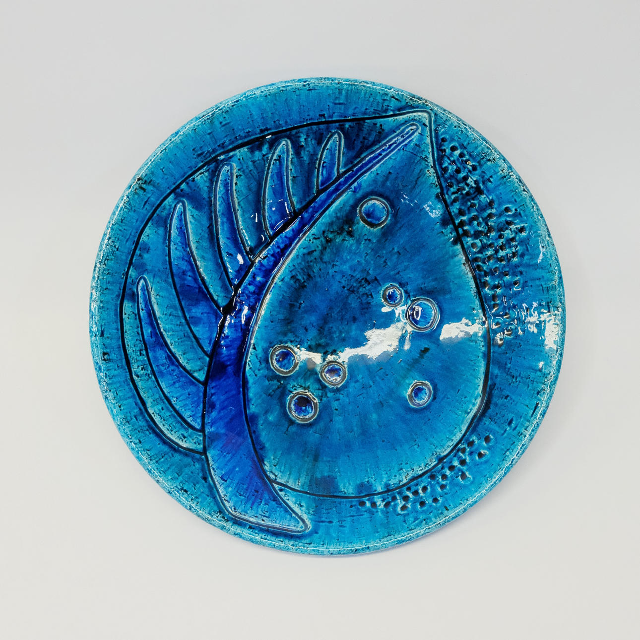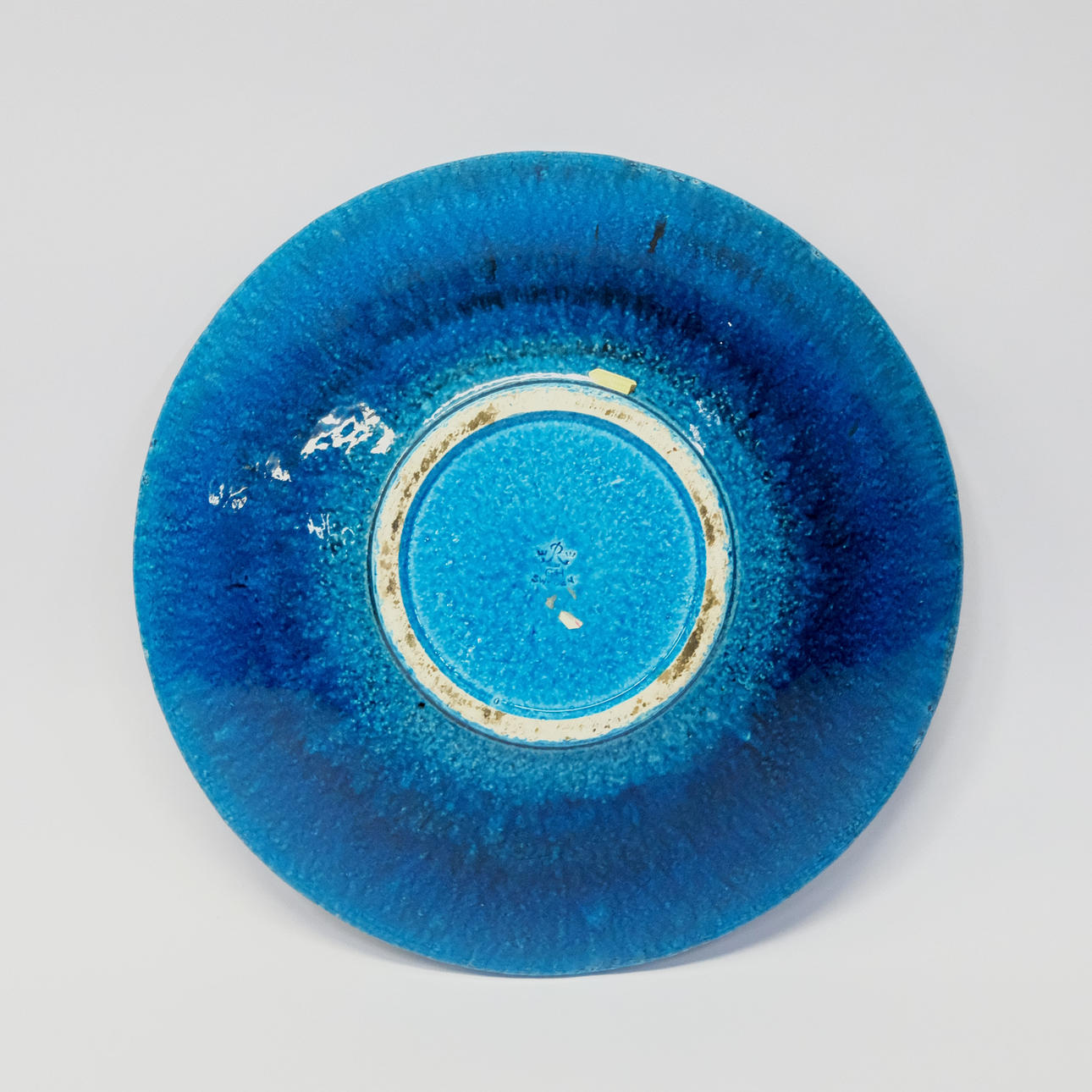 Kamottet og blåt glaseret, højde 9cm, diameter 37cm.