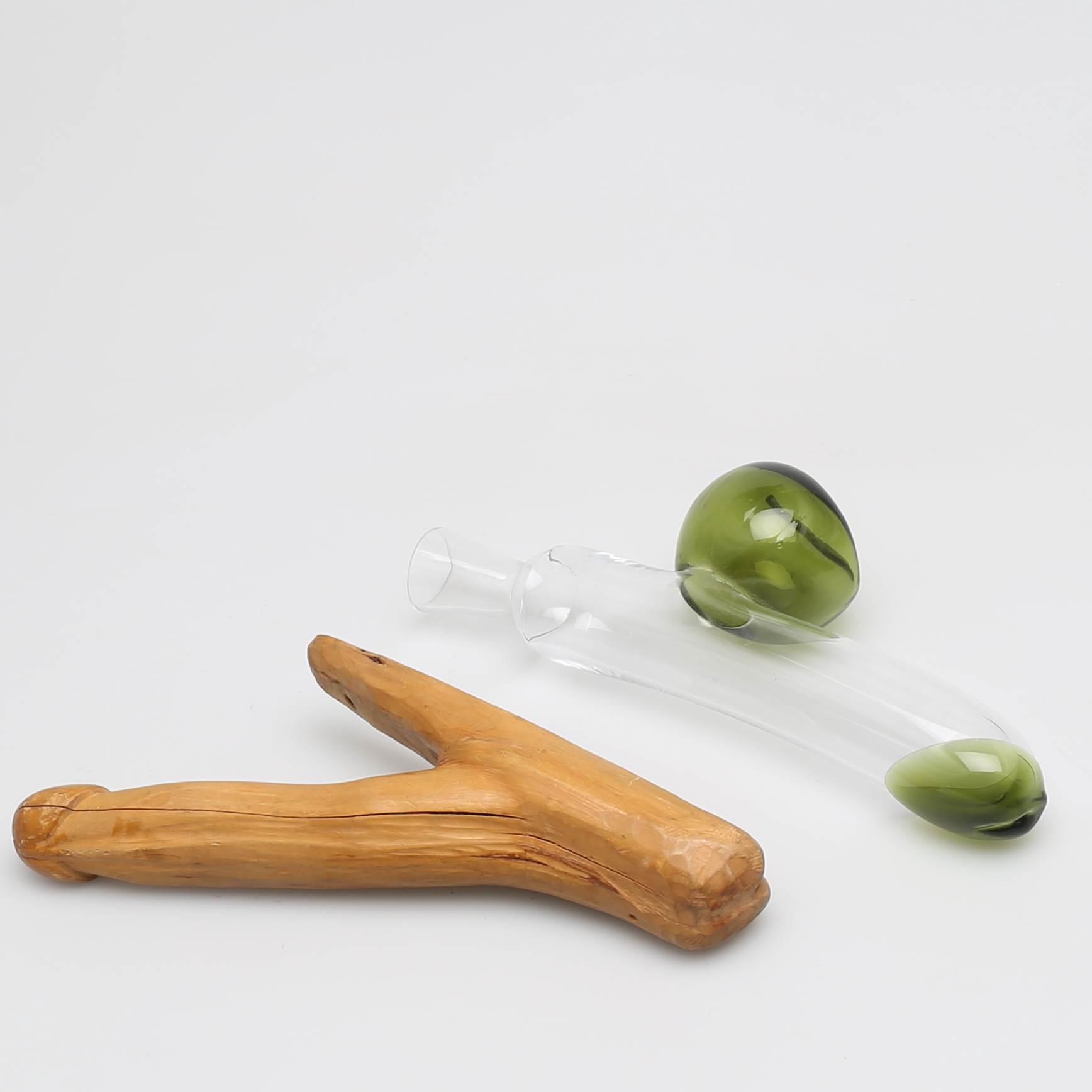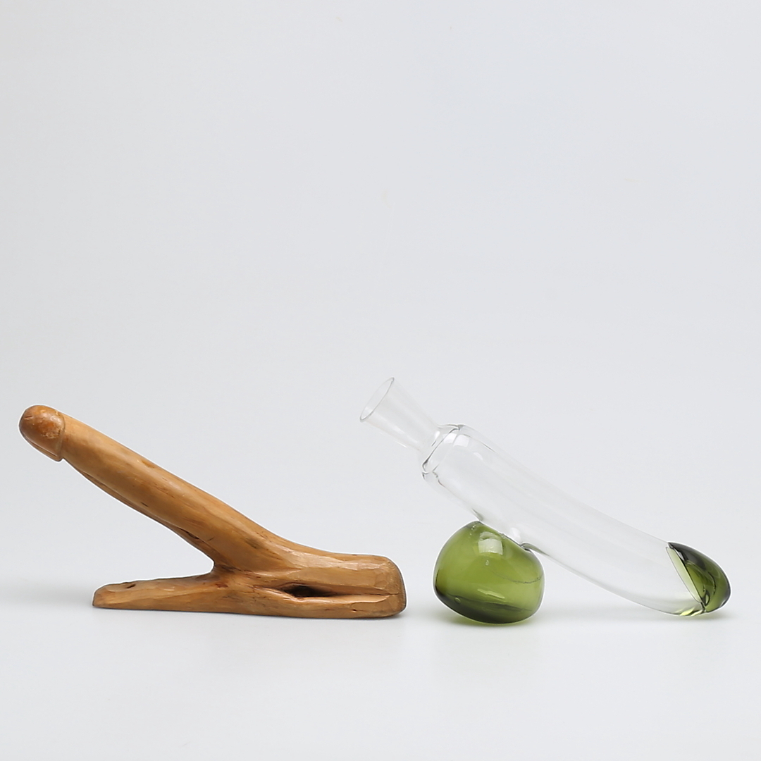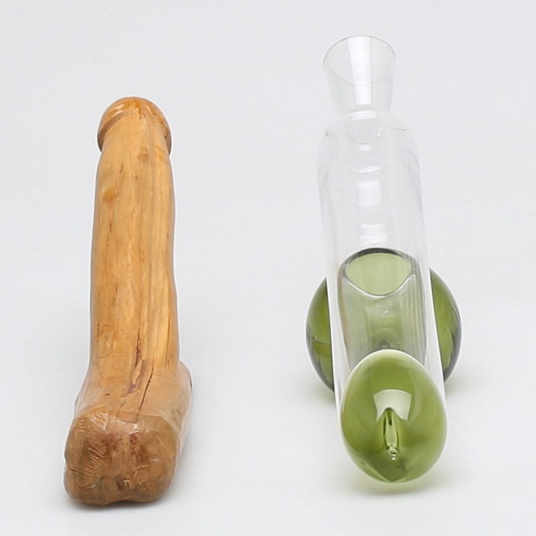 332679. FLASKE- & TØJKROG, 2 STK, glas og træ.