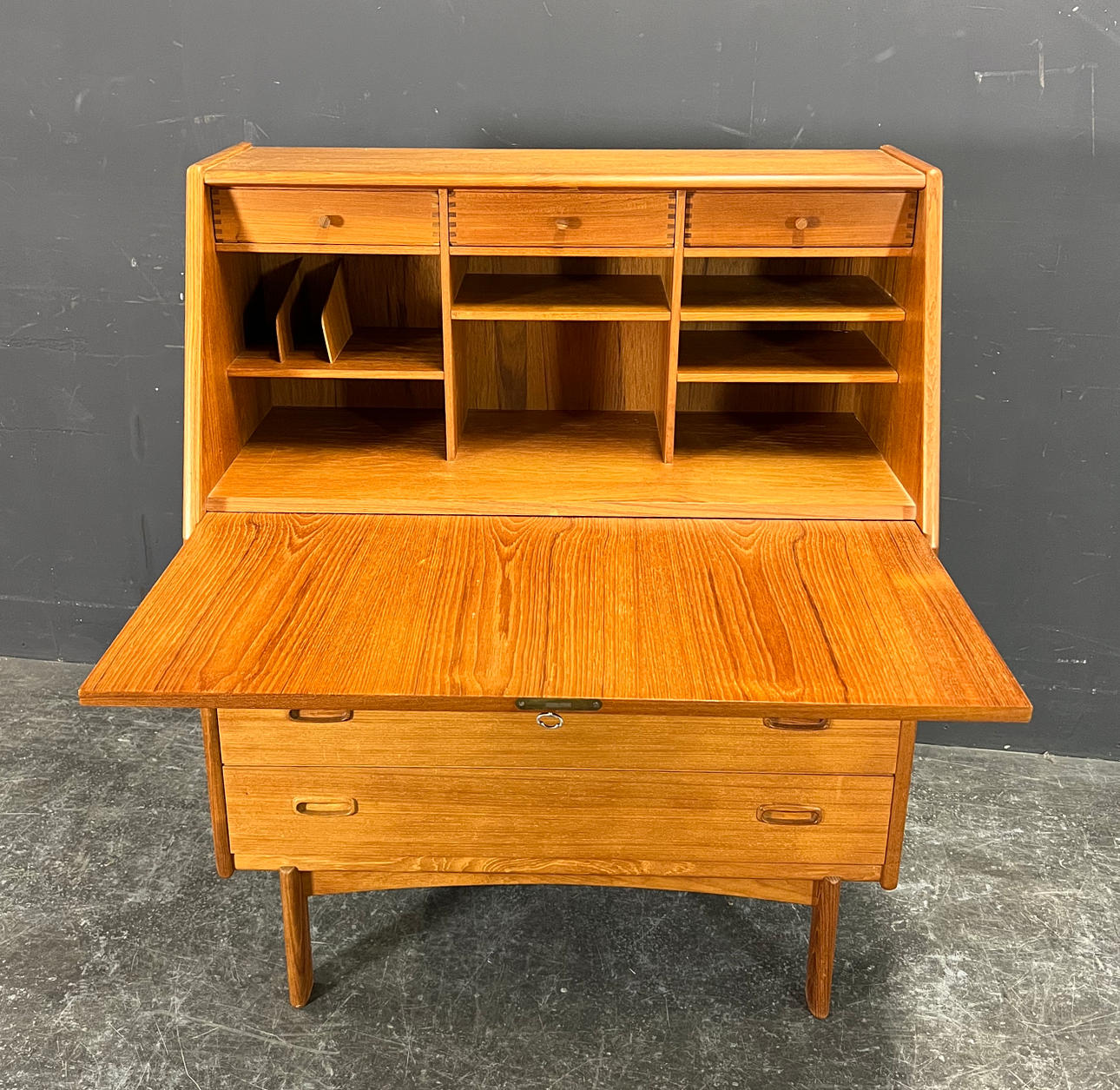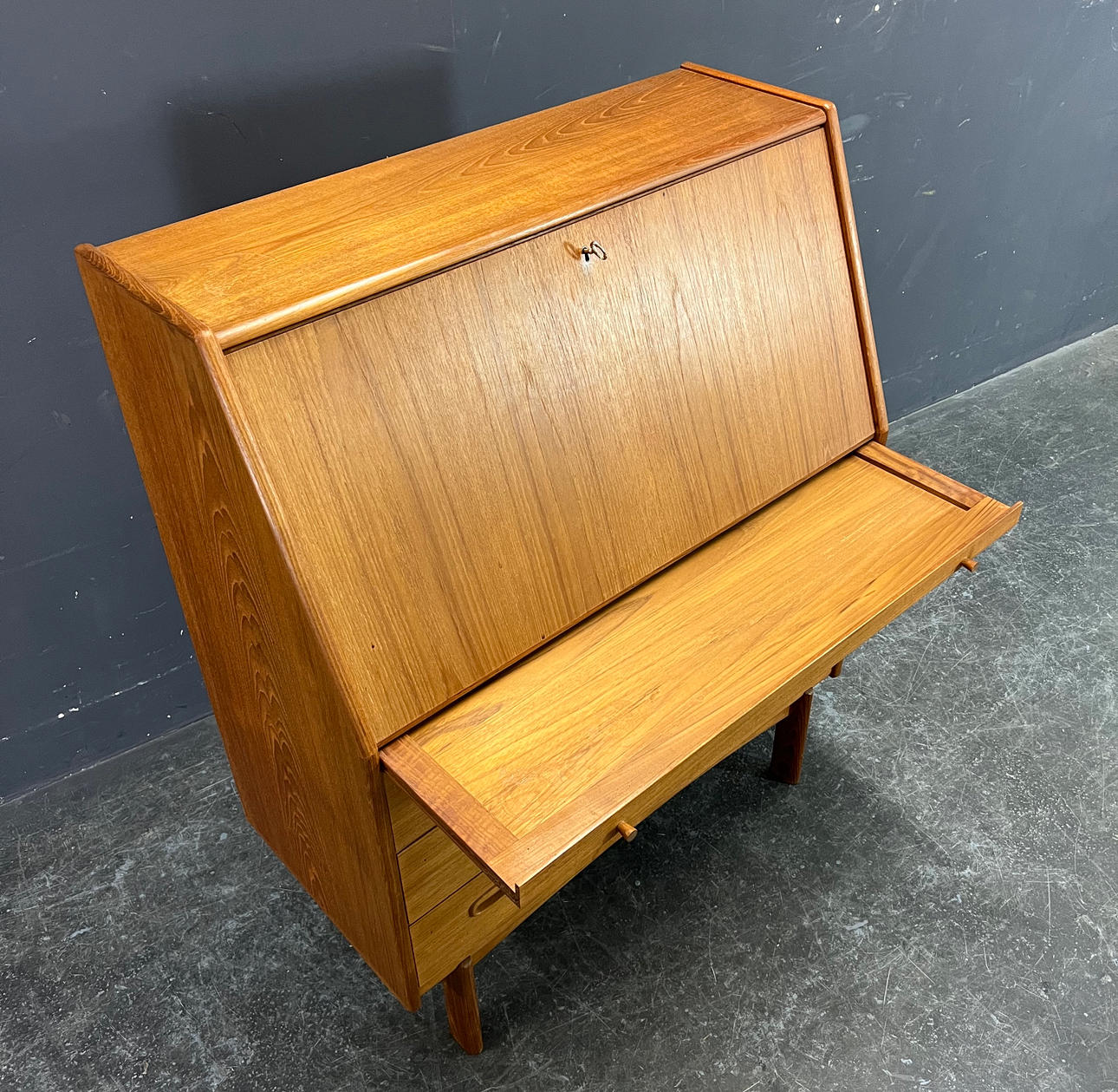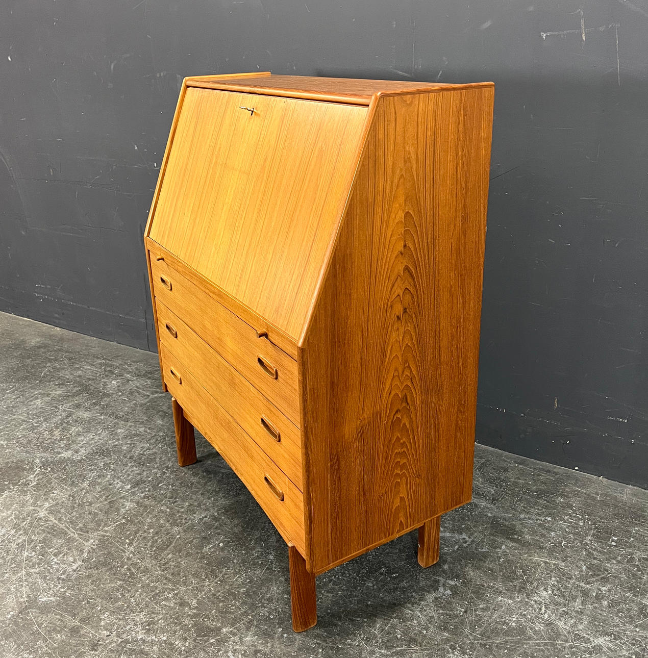 Teak træ delvist fineret, delvis massivt.