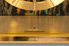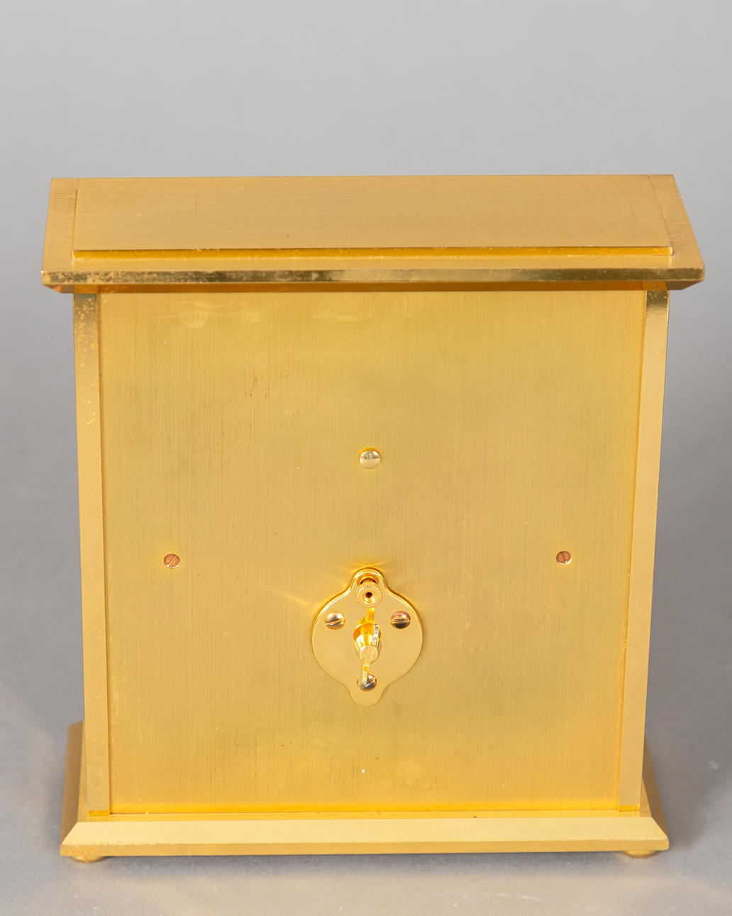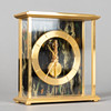 Messing, forgyld/krystalglas. Meget rektangulært hus, glaseret på tre sider.