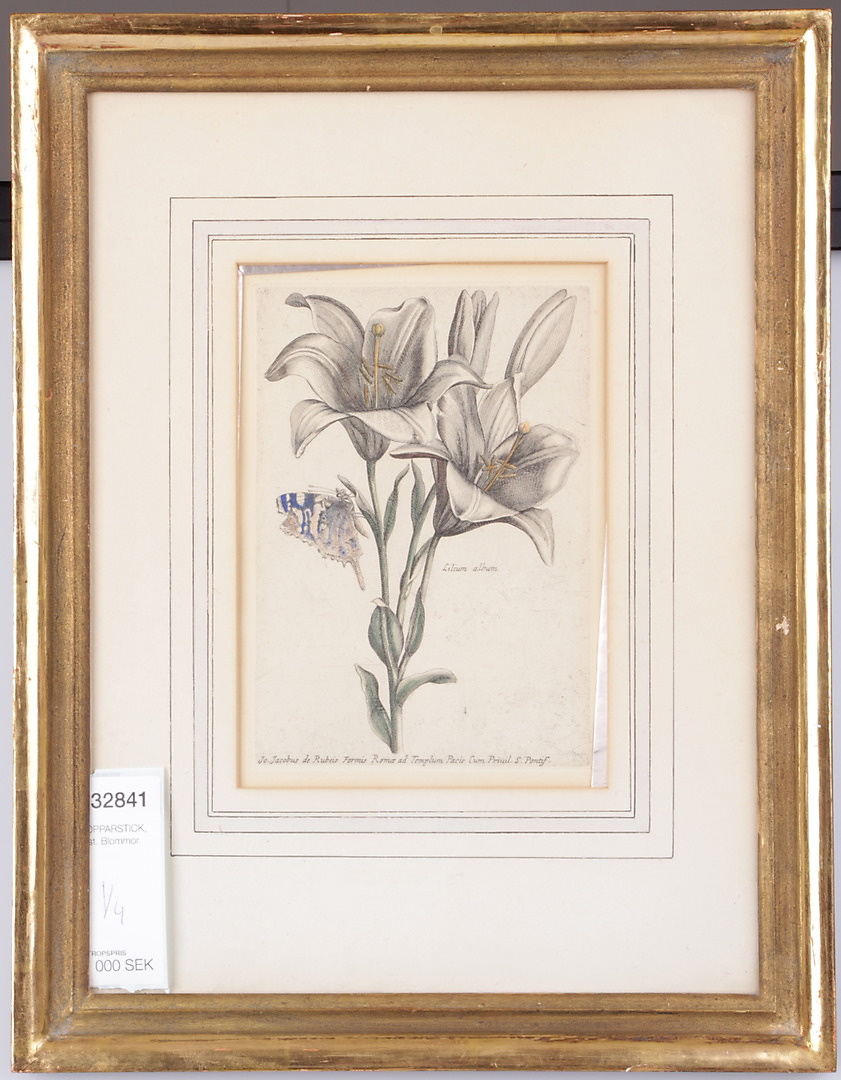 332841. KOBBERSTIK, 4 stk. Farvet, dekor af blomster.