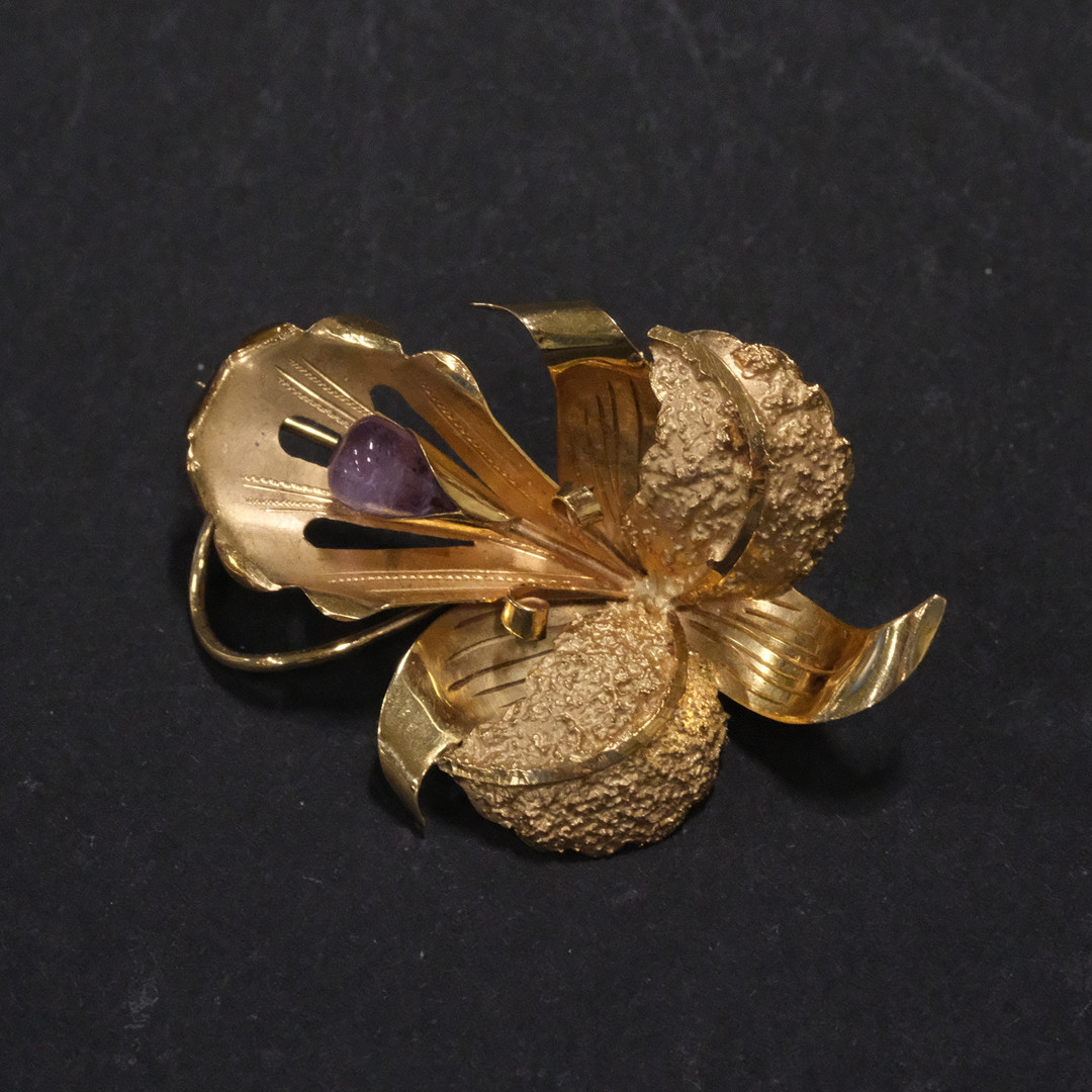 3330140. BROCHE MED AMETYST, 18K GULD.
