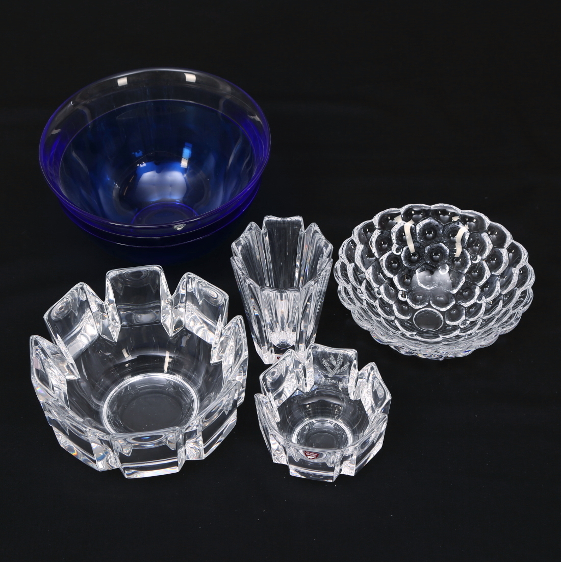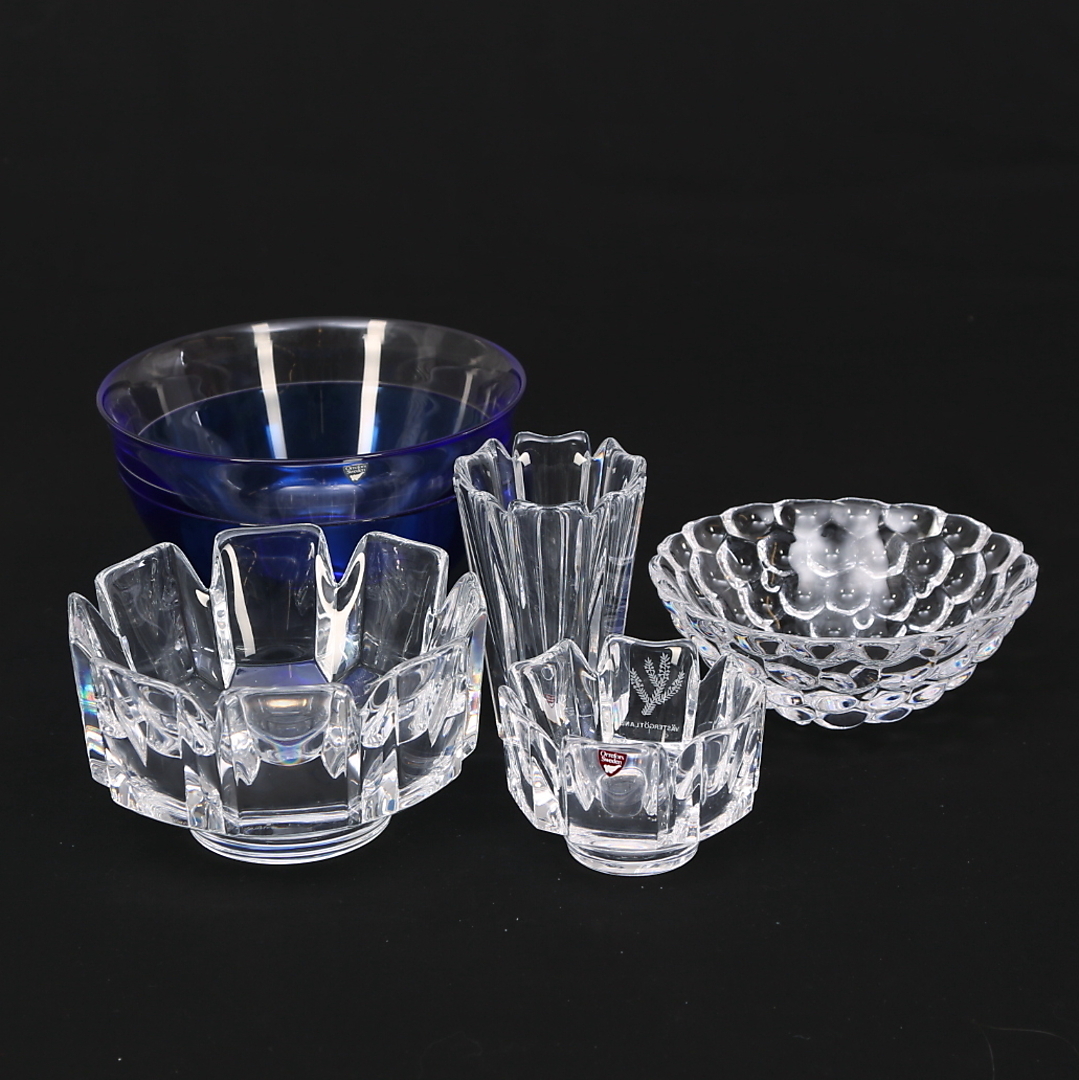 333116. GLAS OBJEKTER, 5 stk, inkl. "Corona" Lars Hellsten, "Hindbær", Orrefors.
