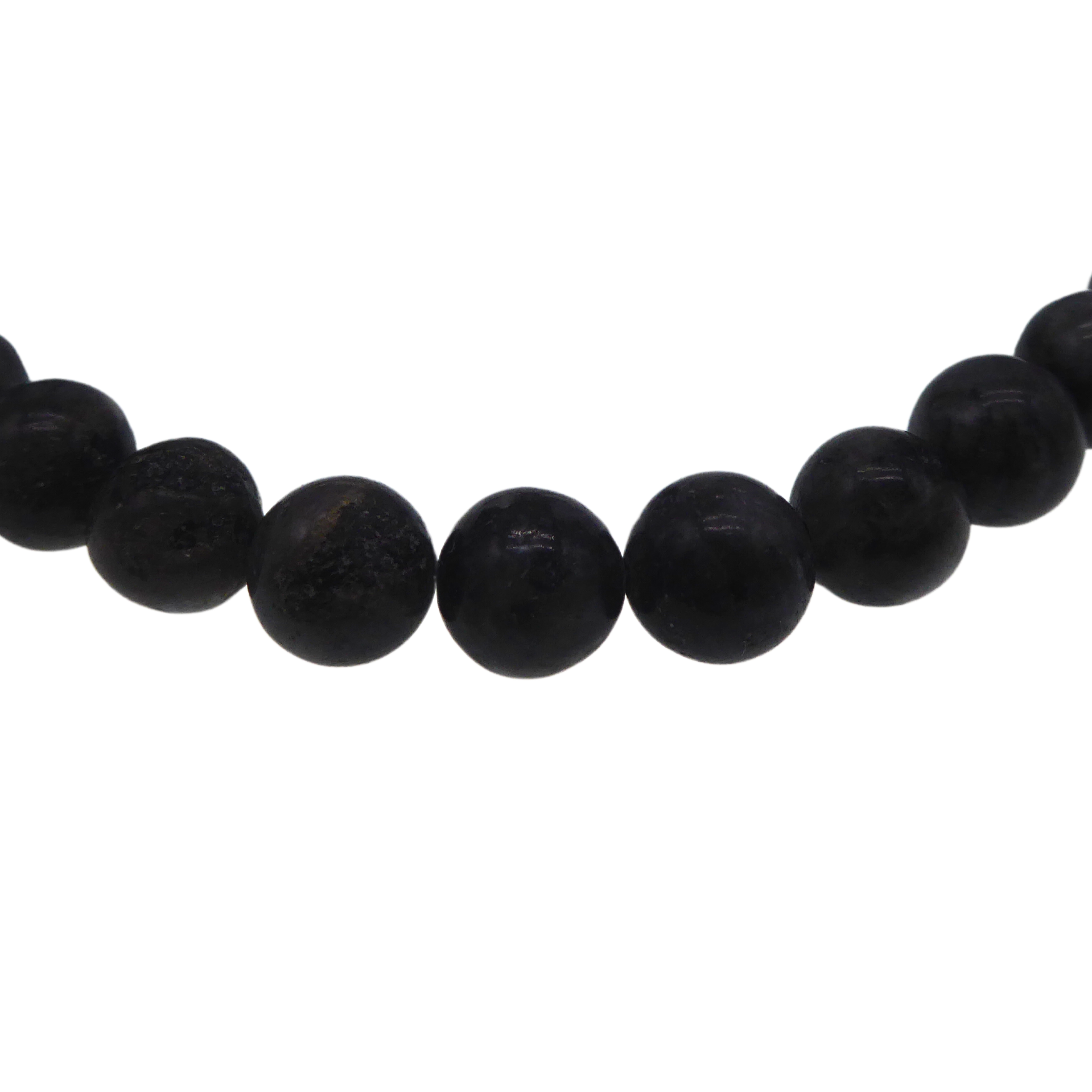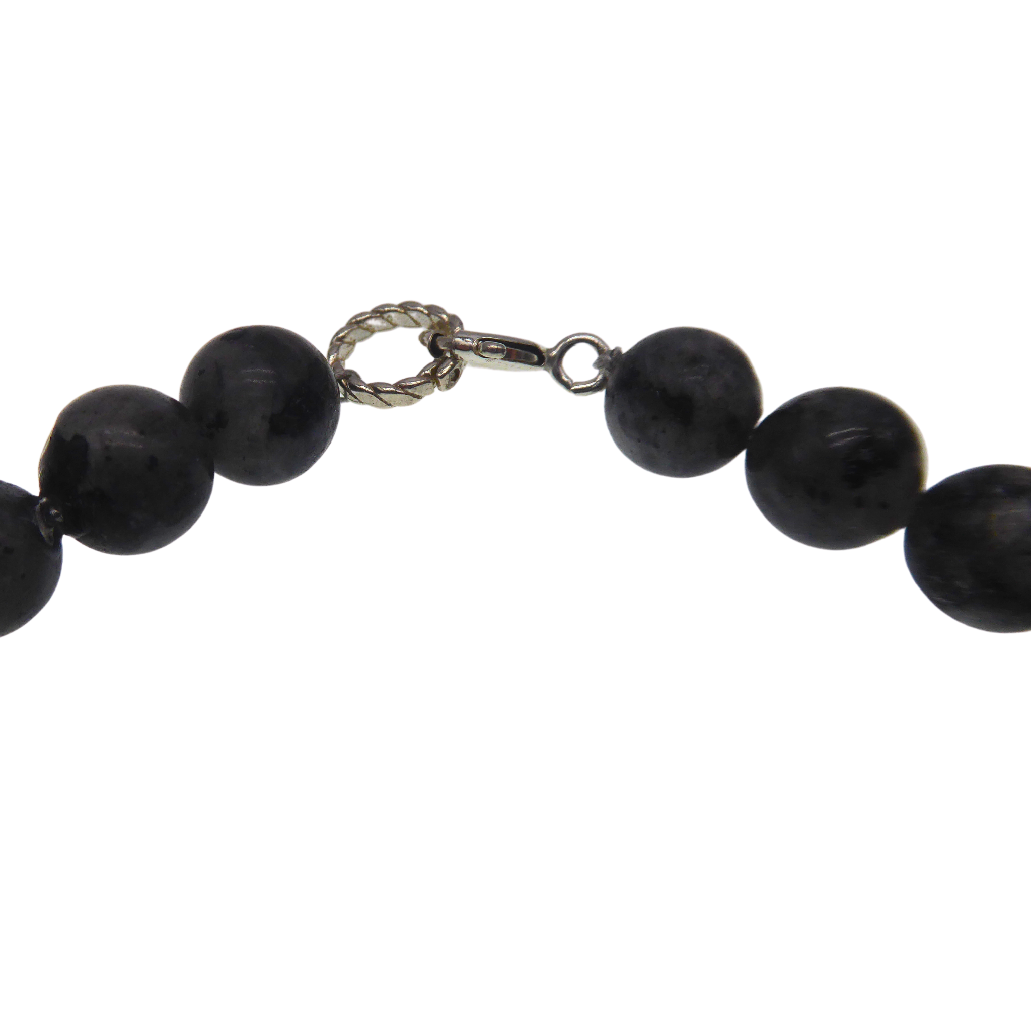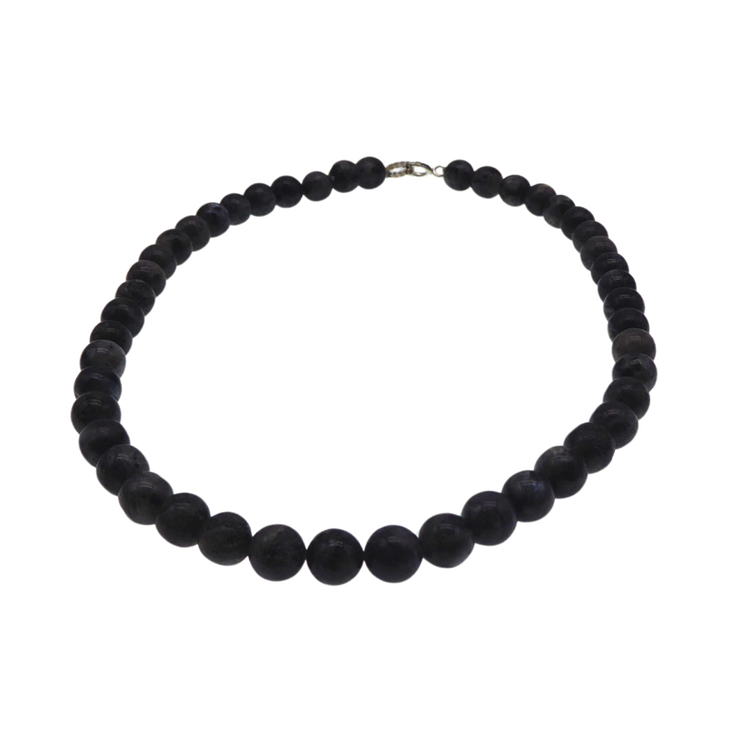 3336313. LABRADORIT PERLE HALSKÆDE MED 925 SØLV LÅS.