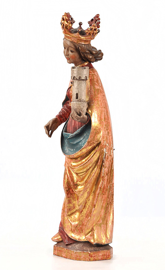 333637. HEILIGENFIGUR, POLYCHROM GEFASST. Den hellige Barbara af Nicodemie.