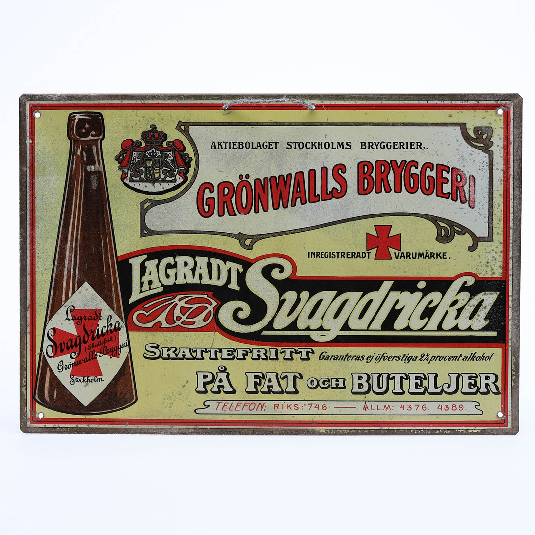 3337165. GREENWALLS BRYGGERISKILT 1900-TALLET.