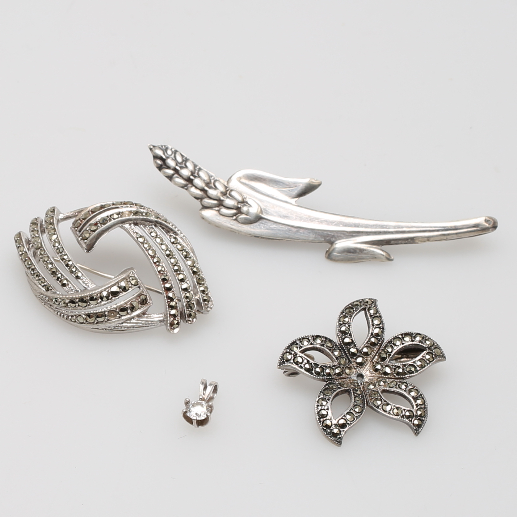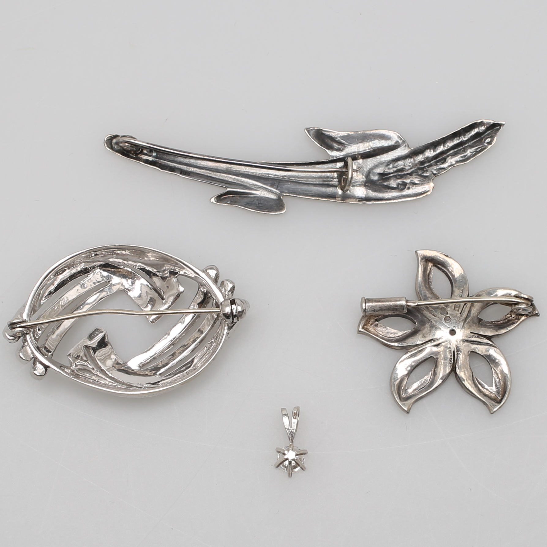 333887. Vedhæng og BROCHER i sølv, 4 dele.