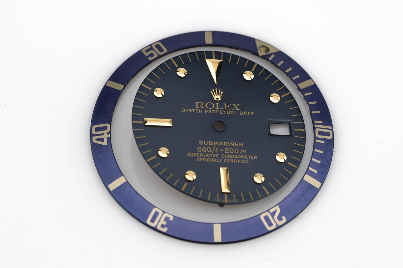 ROLEX, urskive og ydre ring SUBMARINER Guld+stål.