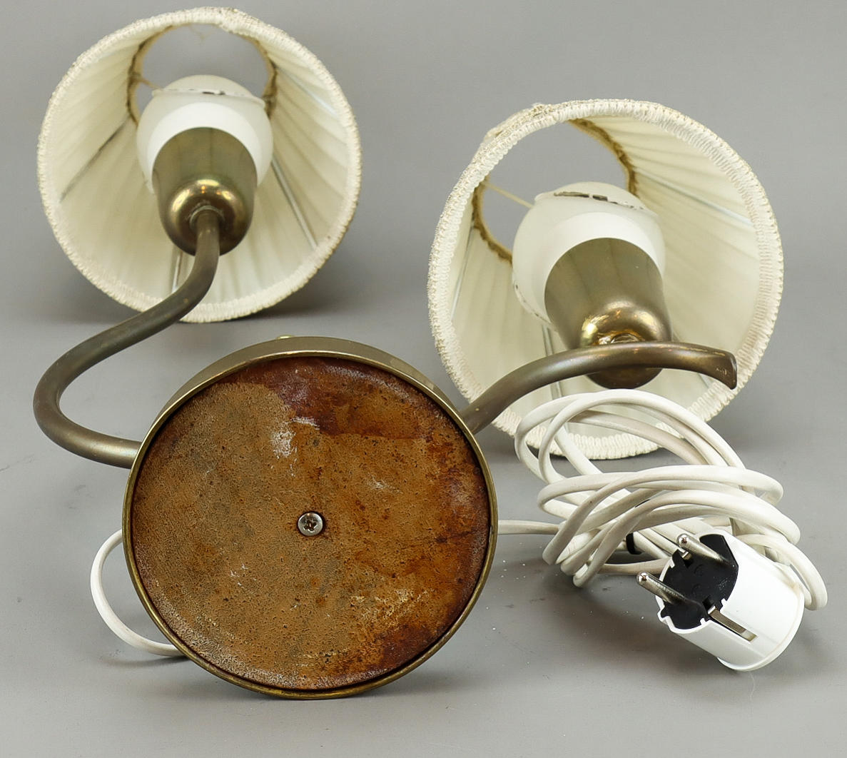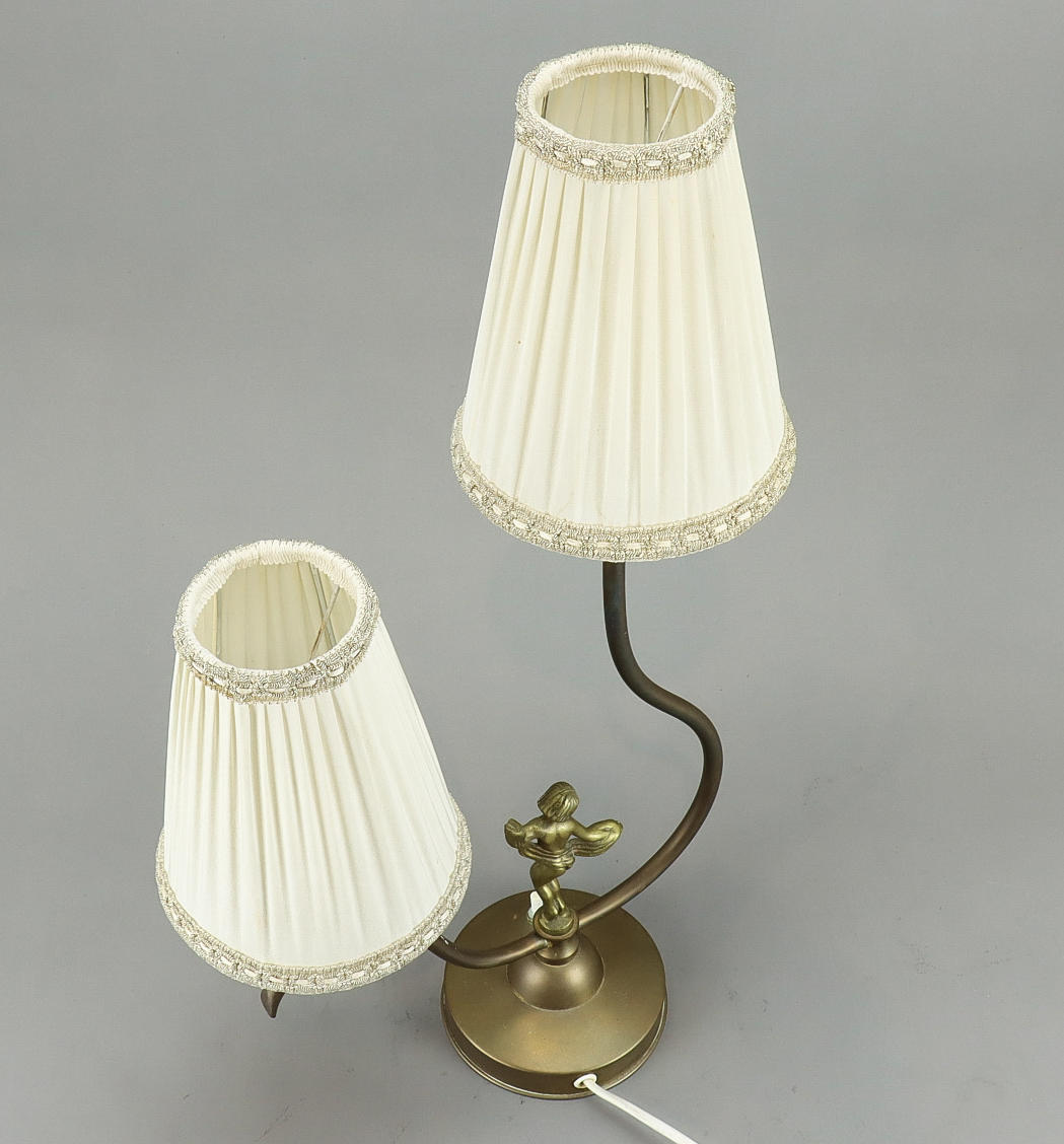 3344124. BØRSTELAMPE fod i messing, 2 lyspunkter.