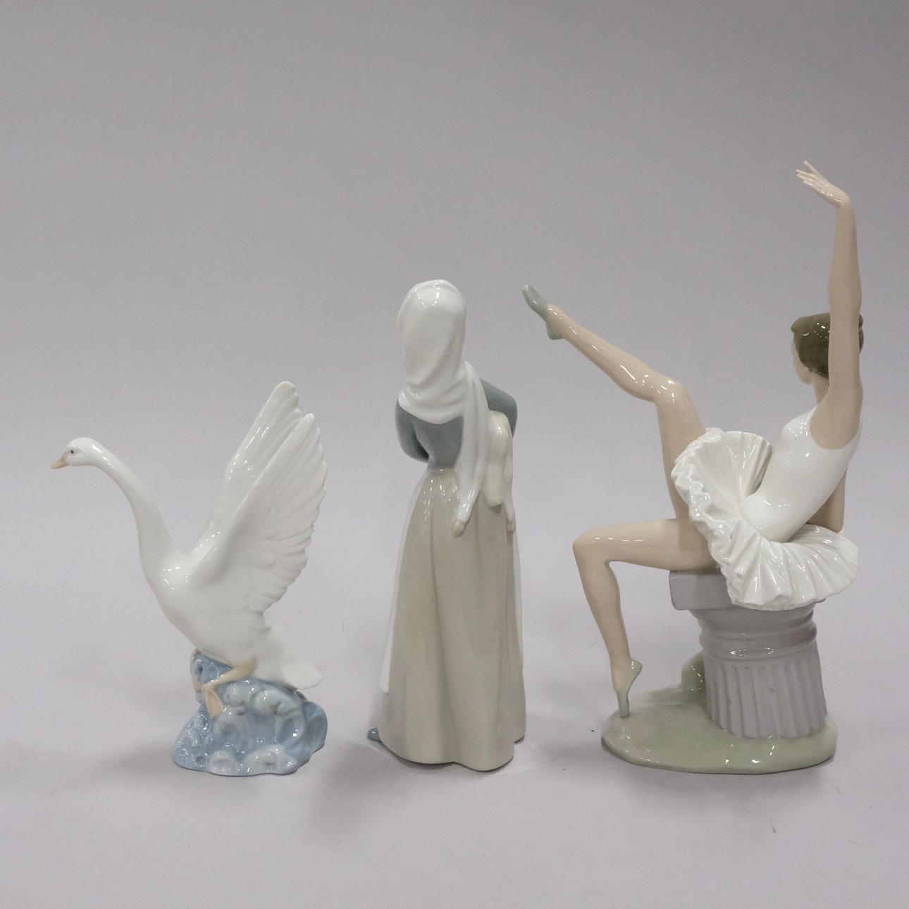 Lladro, tre figurer, højde 14,5, 15 og 27,5cm. Nao figur, højde 20,5cm. Zephir figur, højde 33,5cm.