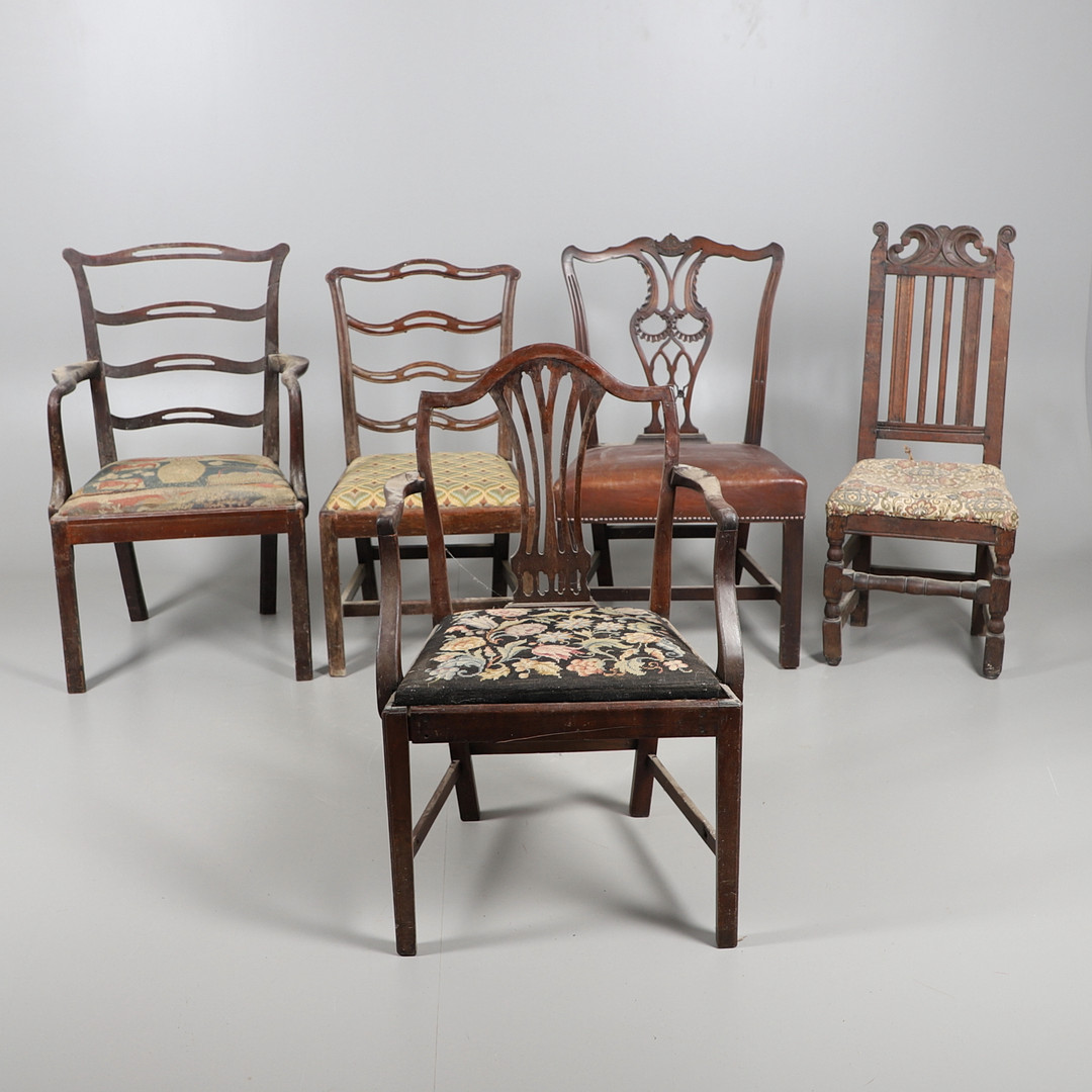 3346050. FEM ANTIKKE STOLE.