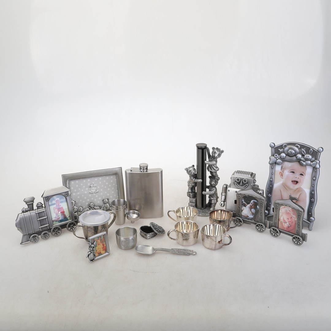 3346578. DIVERSE, dåbsartikler, stel, lommeplunta, sparegris osv.