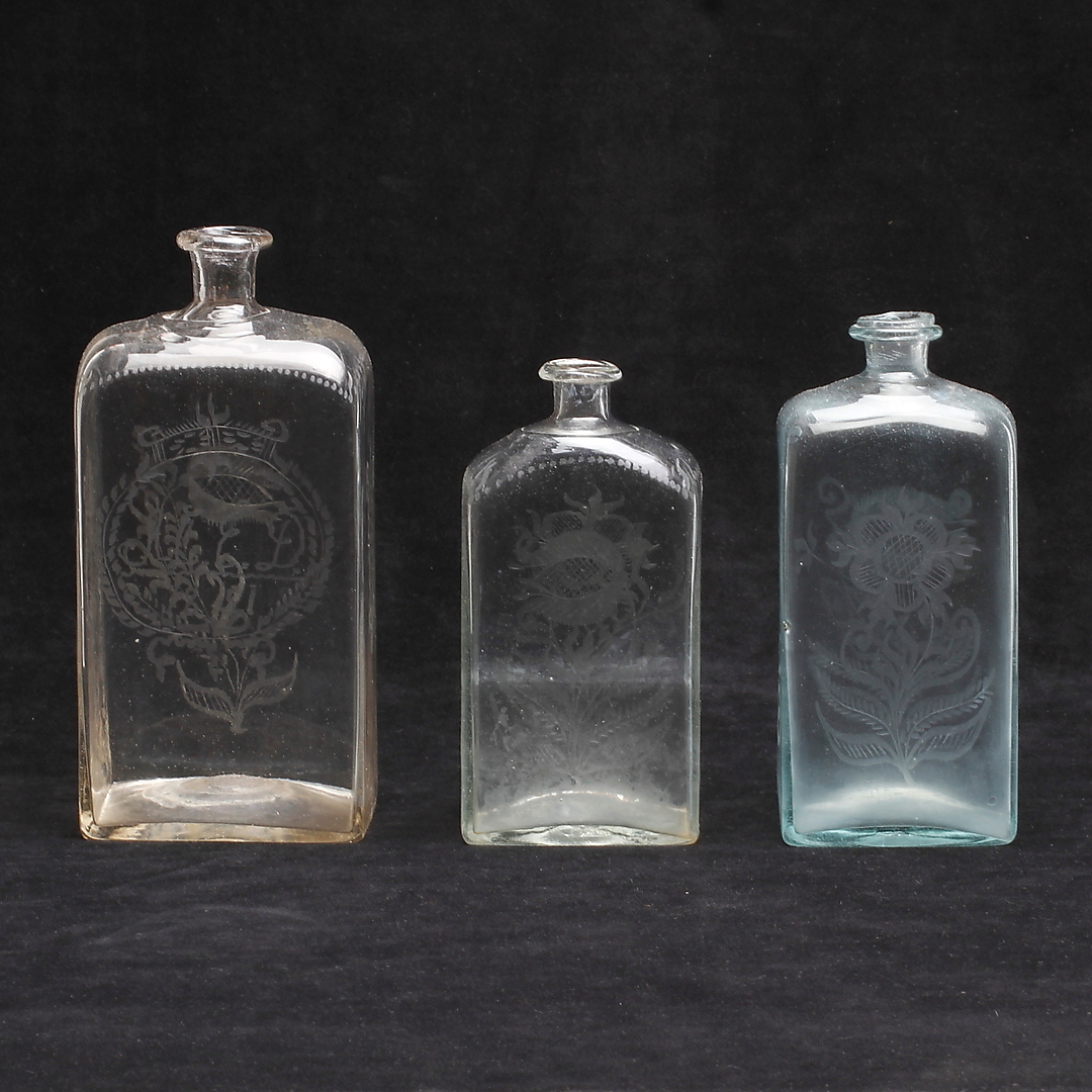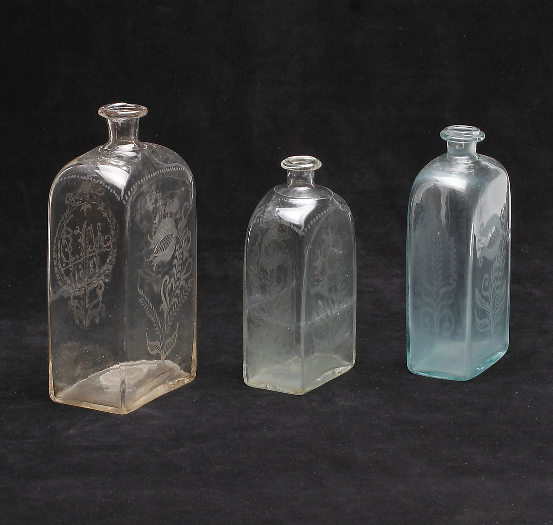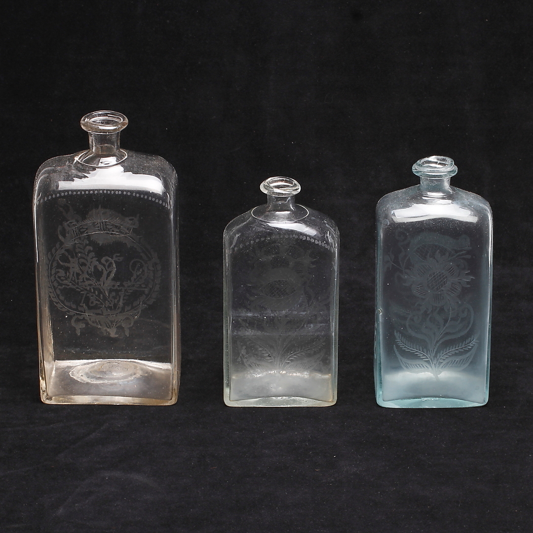 334945. FLASKER, 3 stk, glas, type Cedersberg, 1800-tallet.