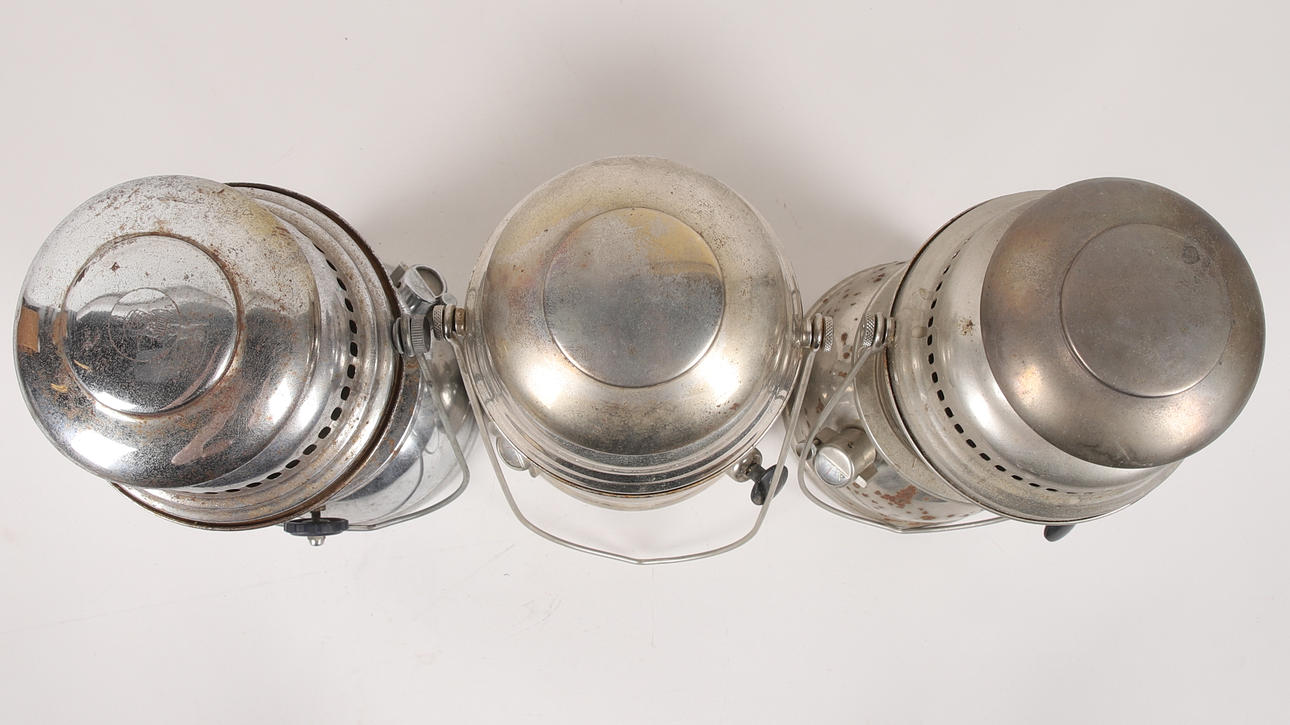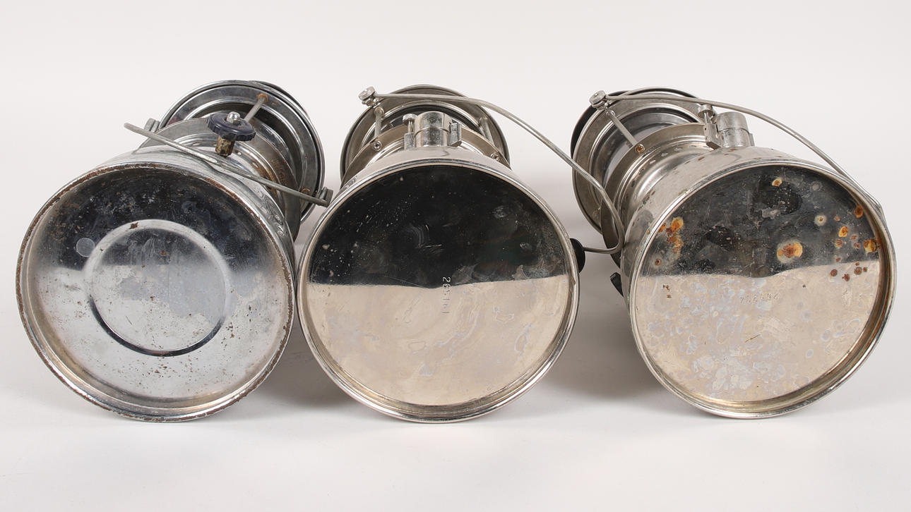 Stormlanterner, tre Silveray og Axe Brand, 20. århundrede.