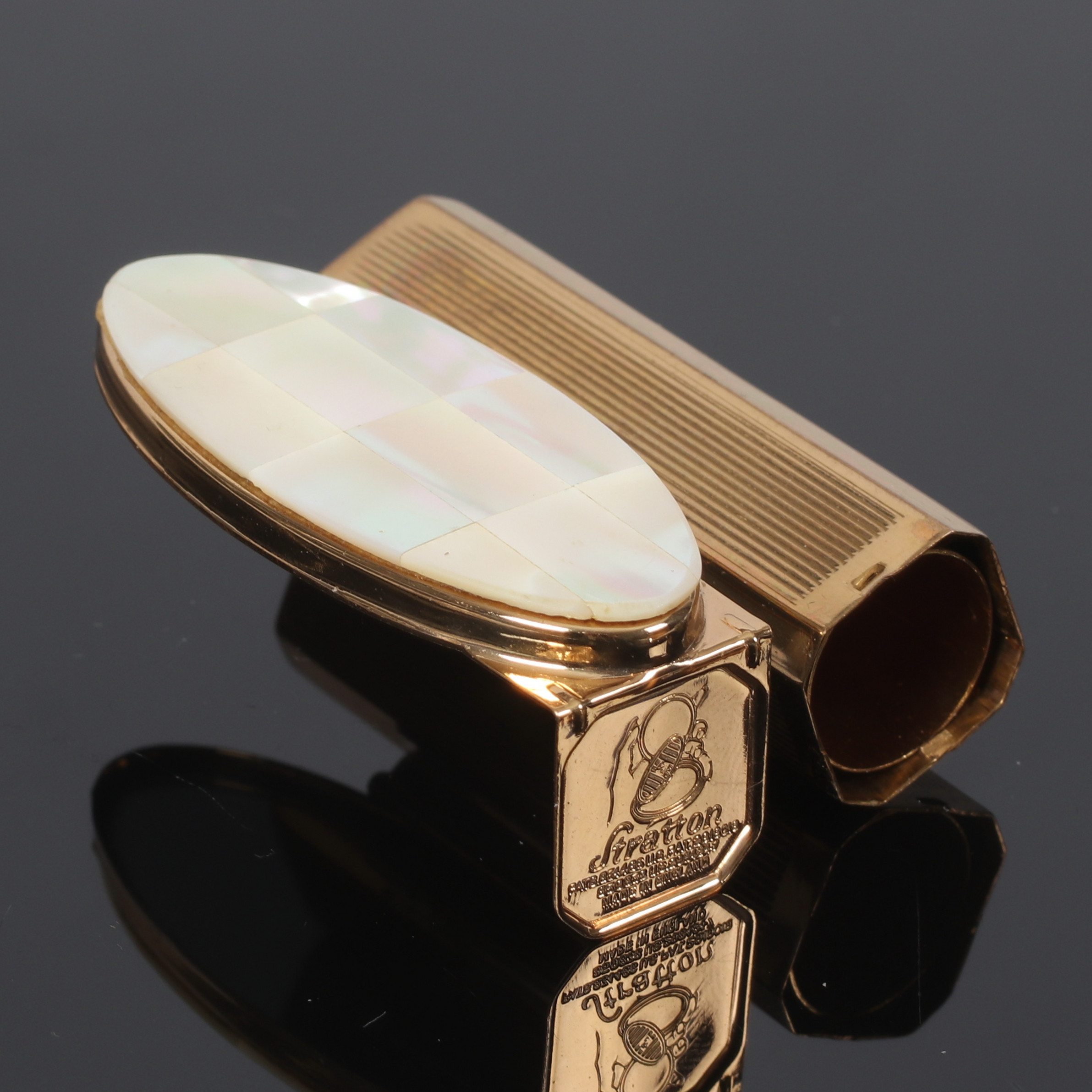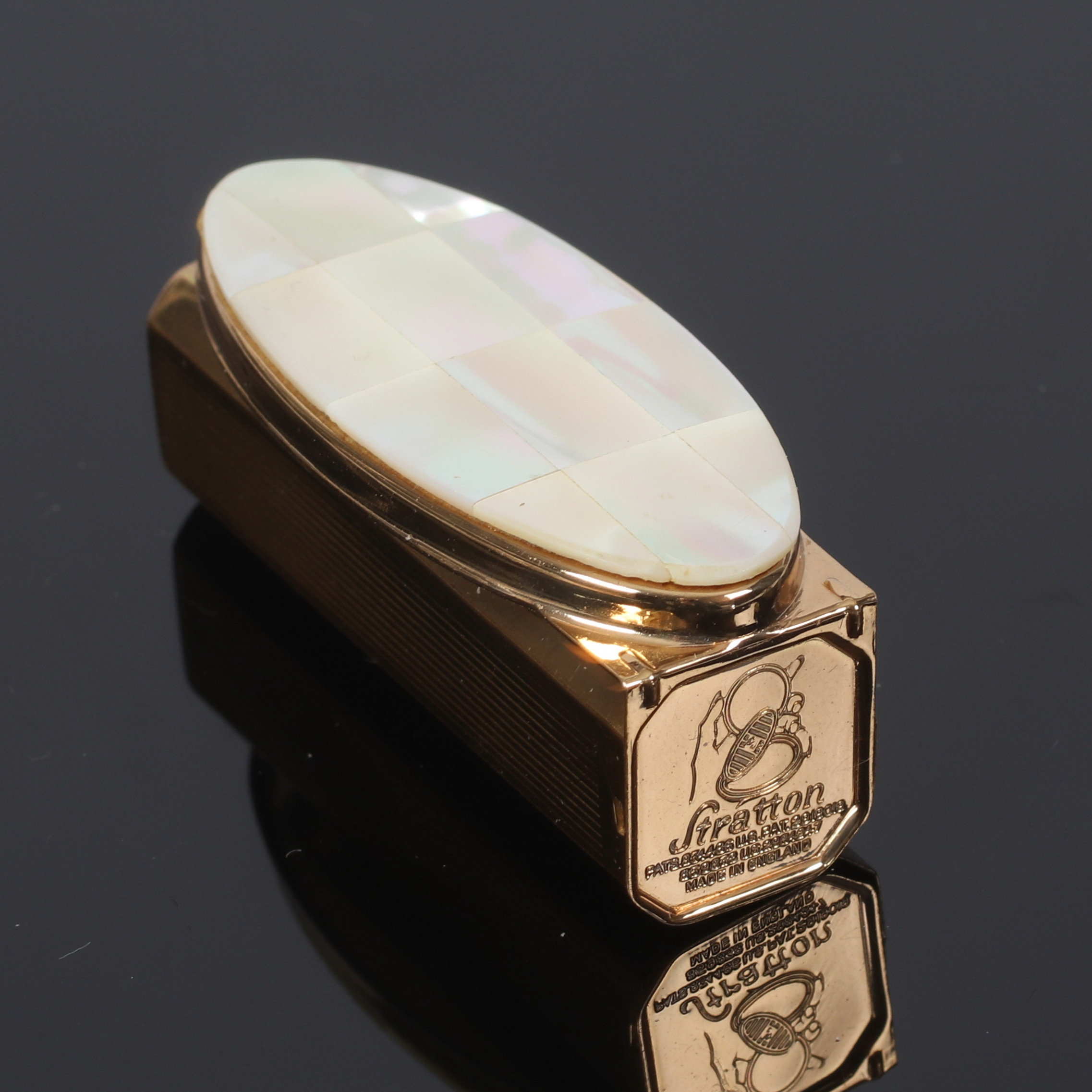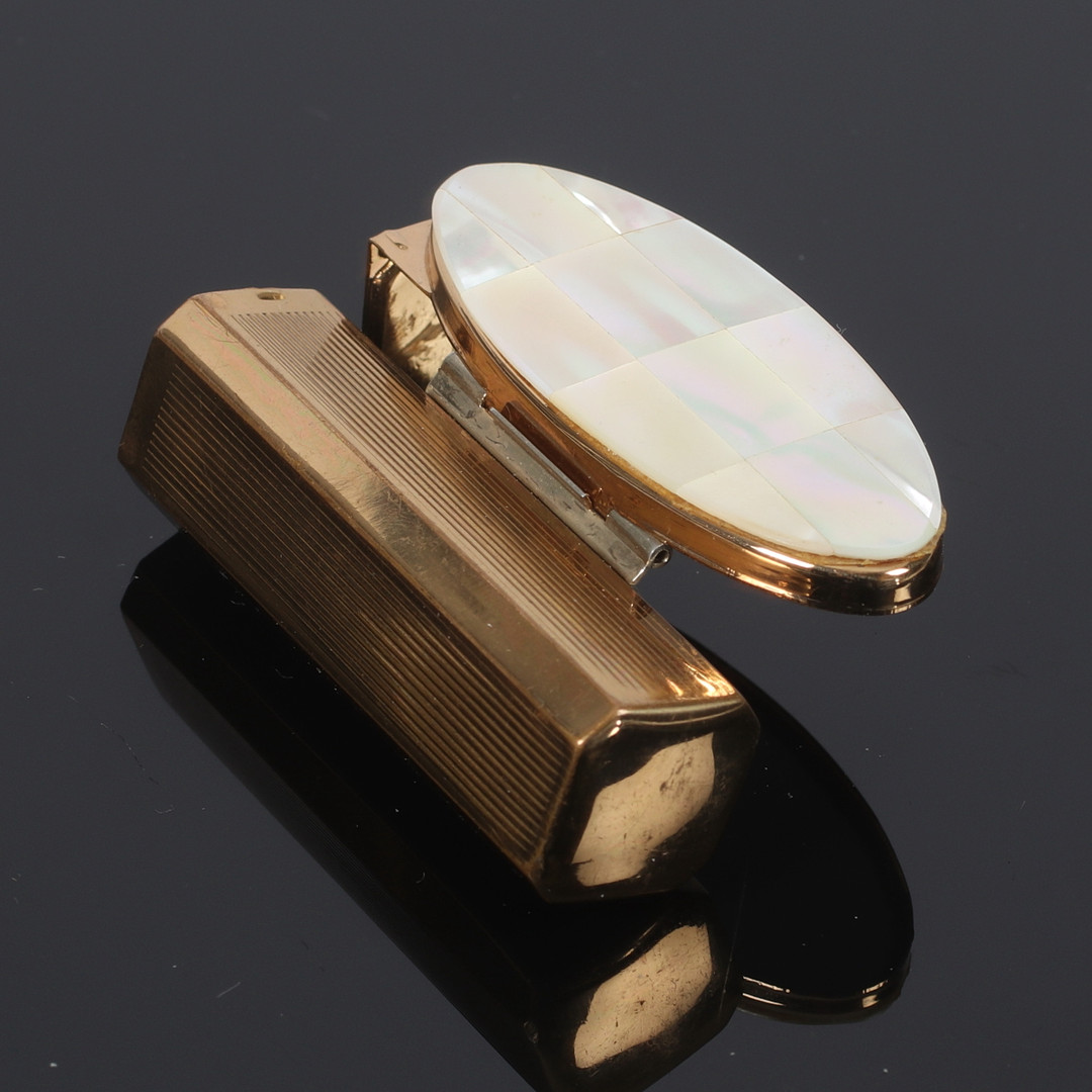 3355848. Et messing læbestiftetui, Stratton, England. 20. århundrede.