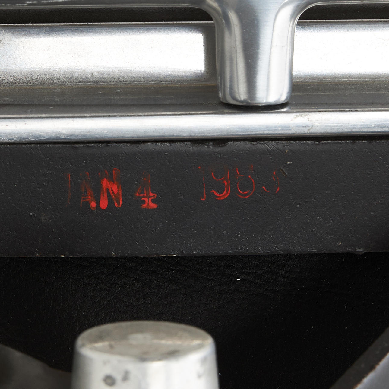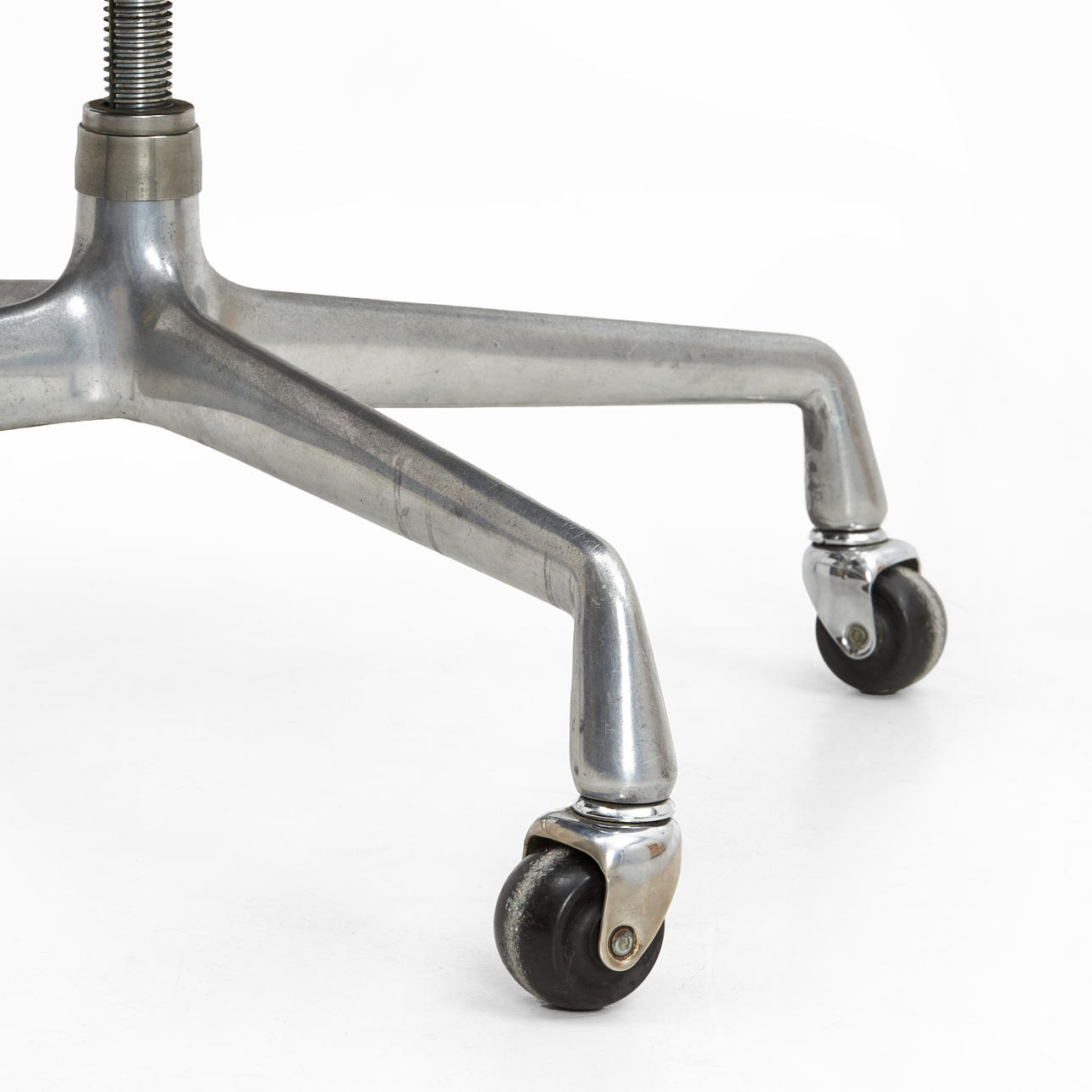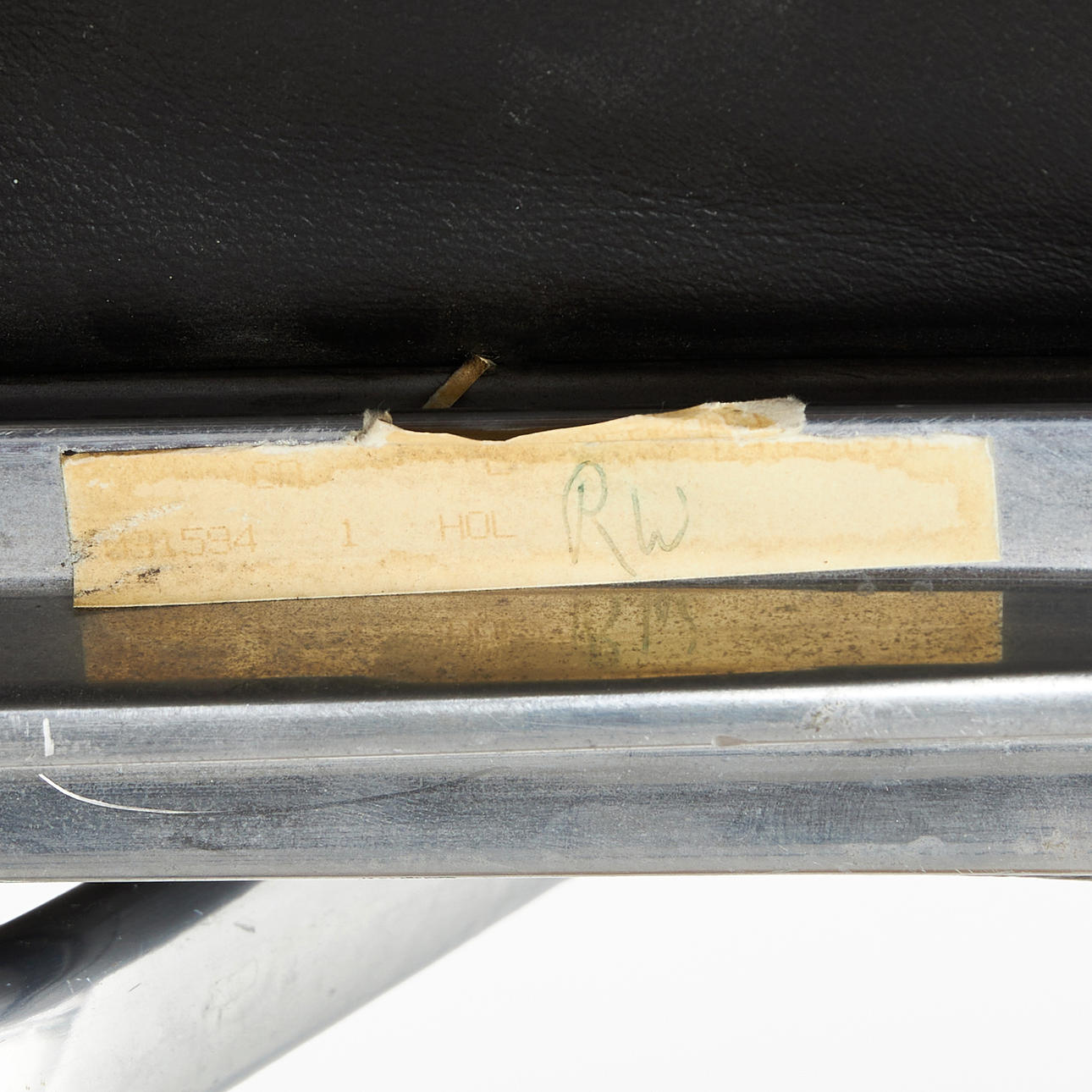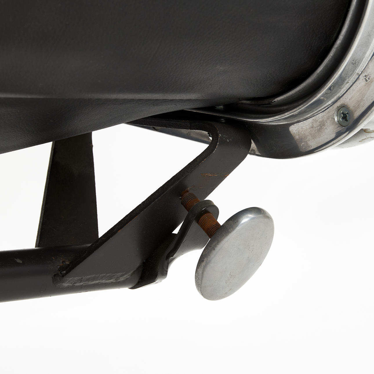 Drejekonstruktion i forkromet støbt aluminium, sort læderbetræk.