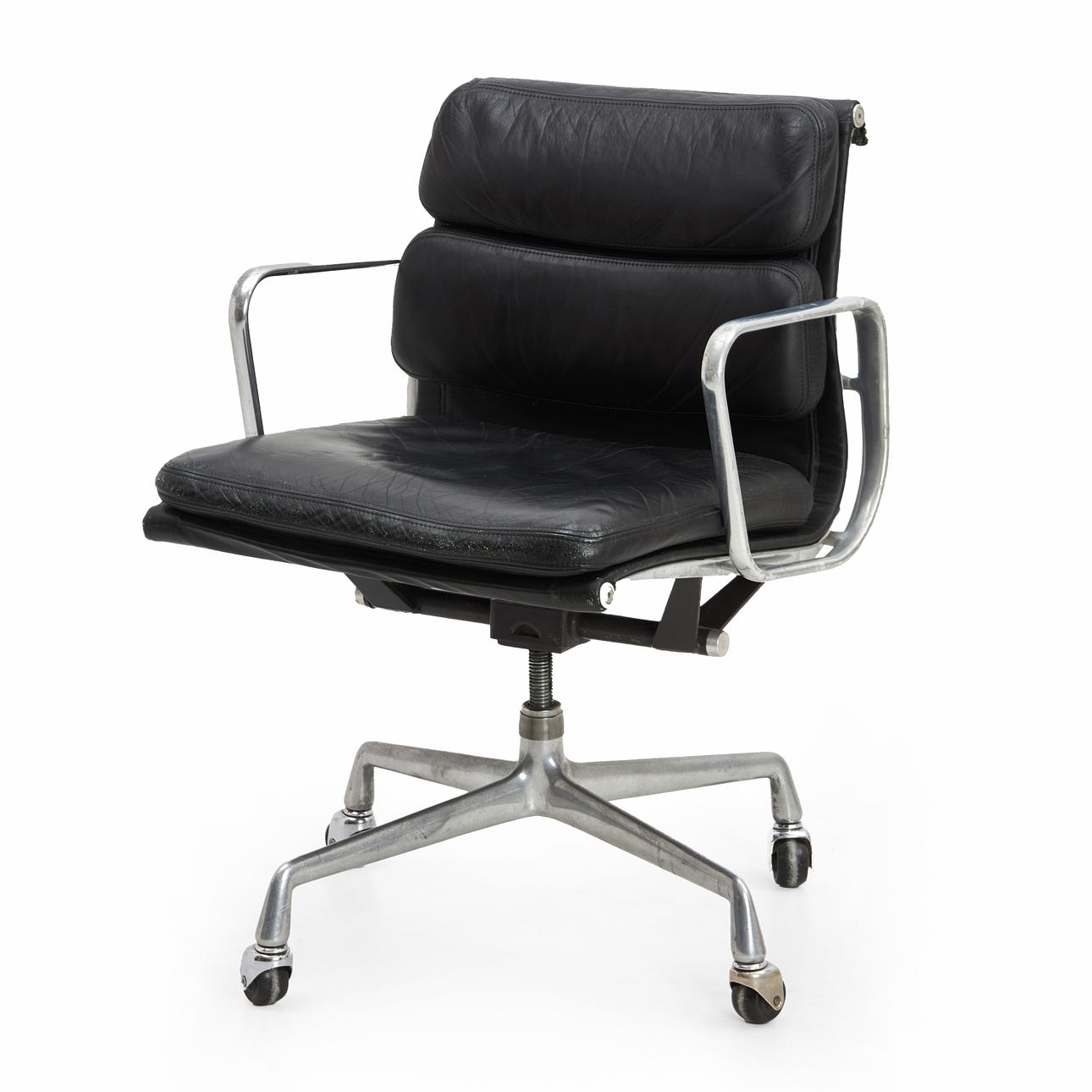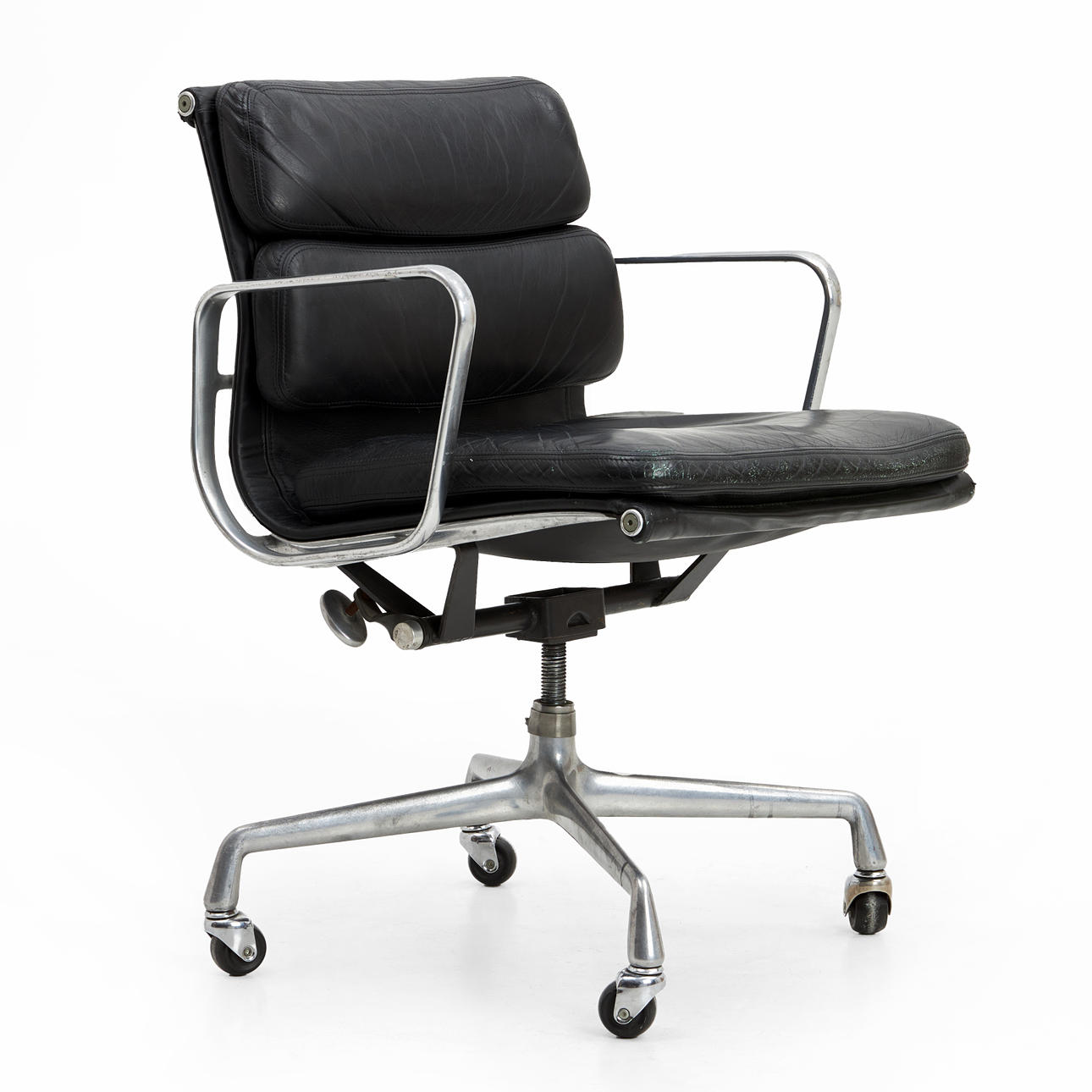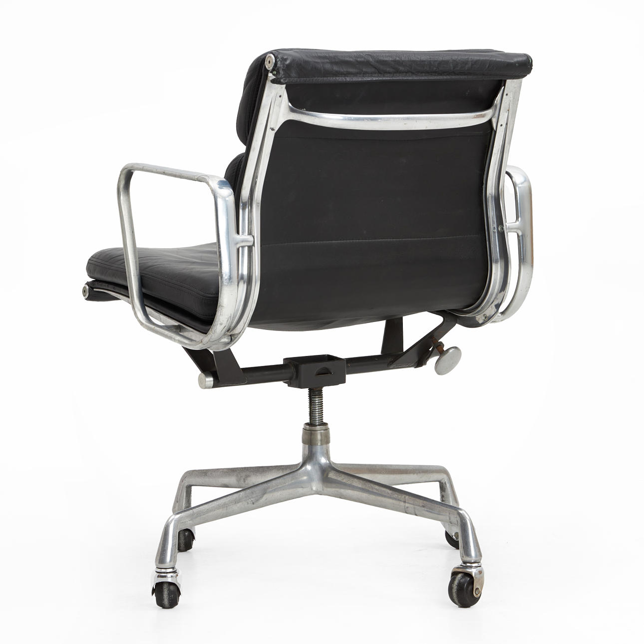 3359097. CHARLES & RAY EAMES. Skrivebordsstol, „EA217", Soft pad Stol, sort læder, forkromet stel, Hermann Miller, fremstillet 1980'erne.